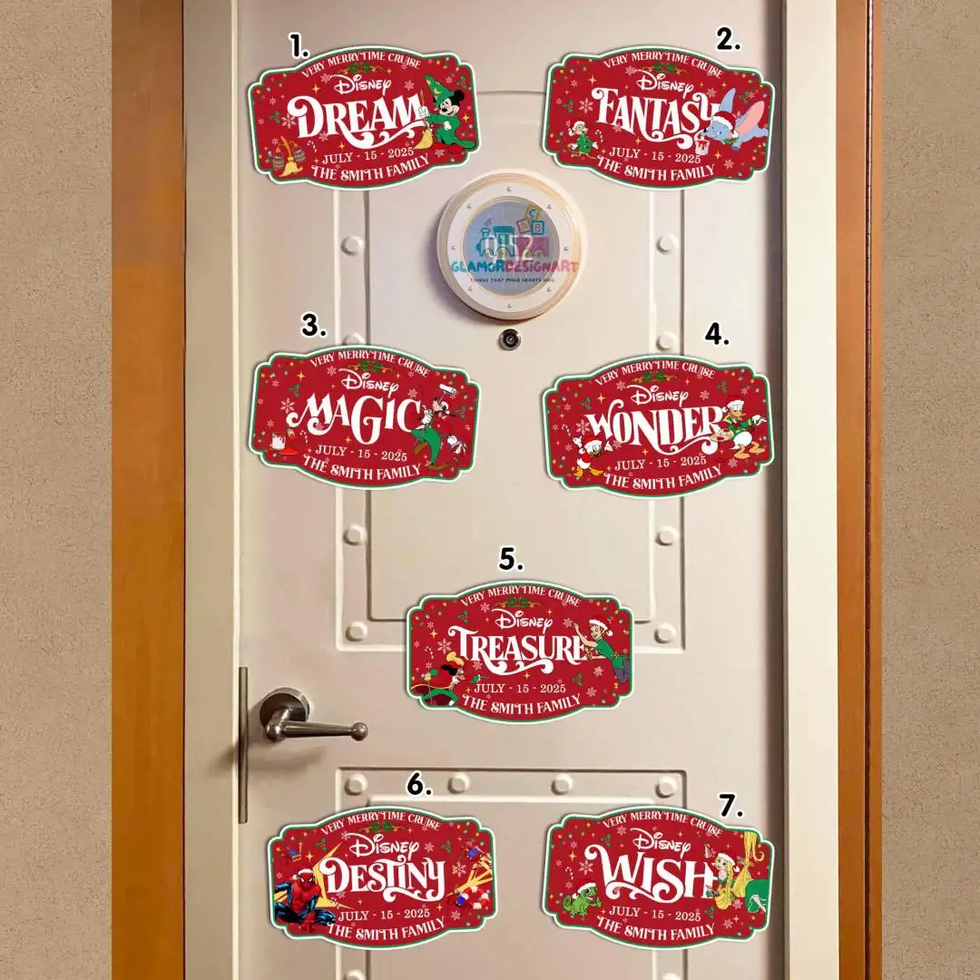 Personalized Christmas Disney Family & Cruise Ship Stateroom Door, Xmas Very Merrytime Cruises Magnet, Cruise Line Ship Name Door Magnet