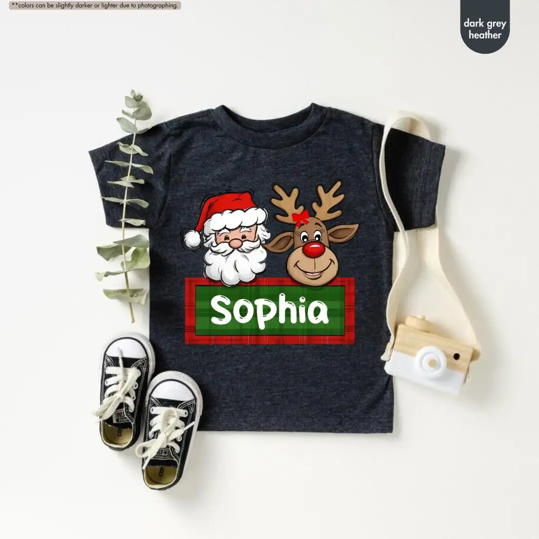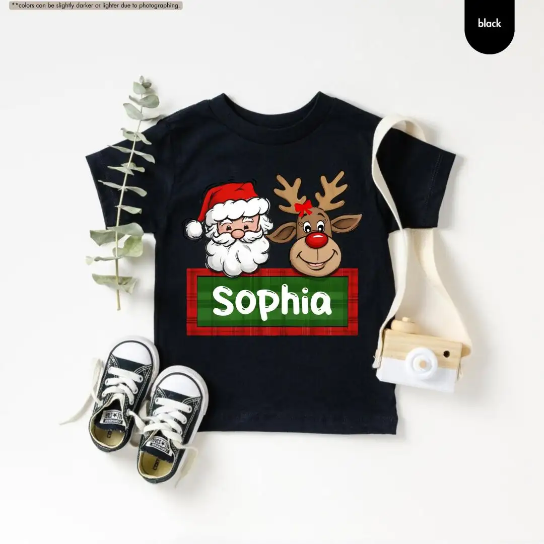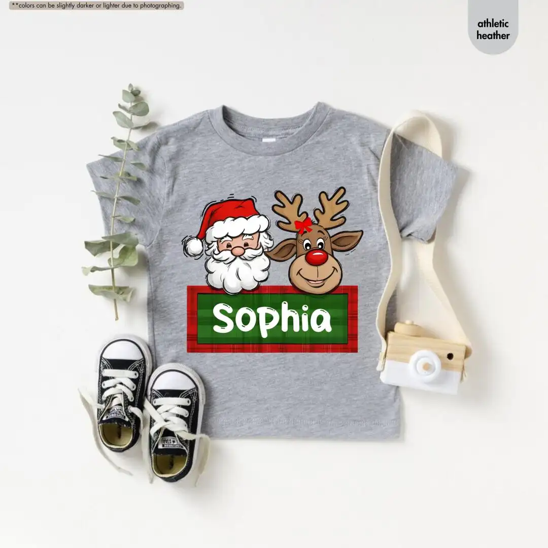 Personalized Christmas Name Shirt for Kids, Custom Baby Christmas Shirt, Santa Reindeer Shirt, Toddler Christmas Tee, Christmas Girl Gift