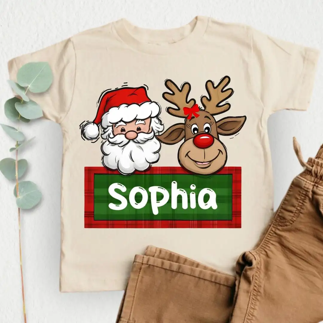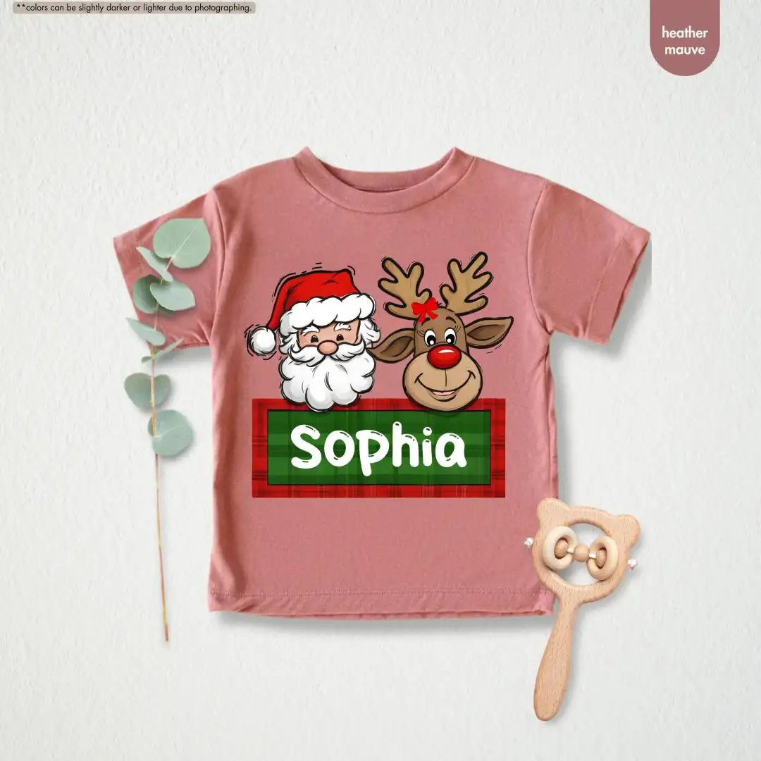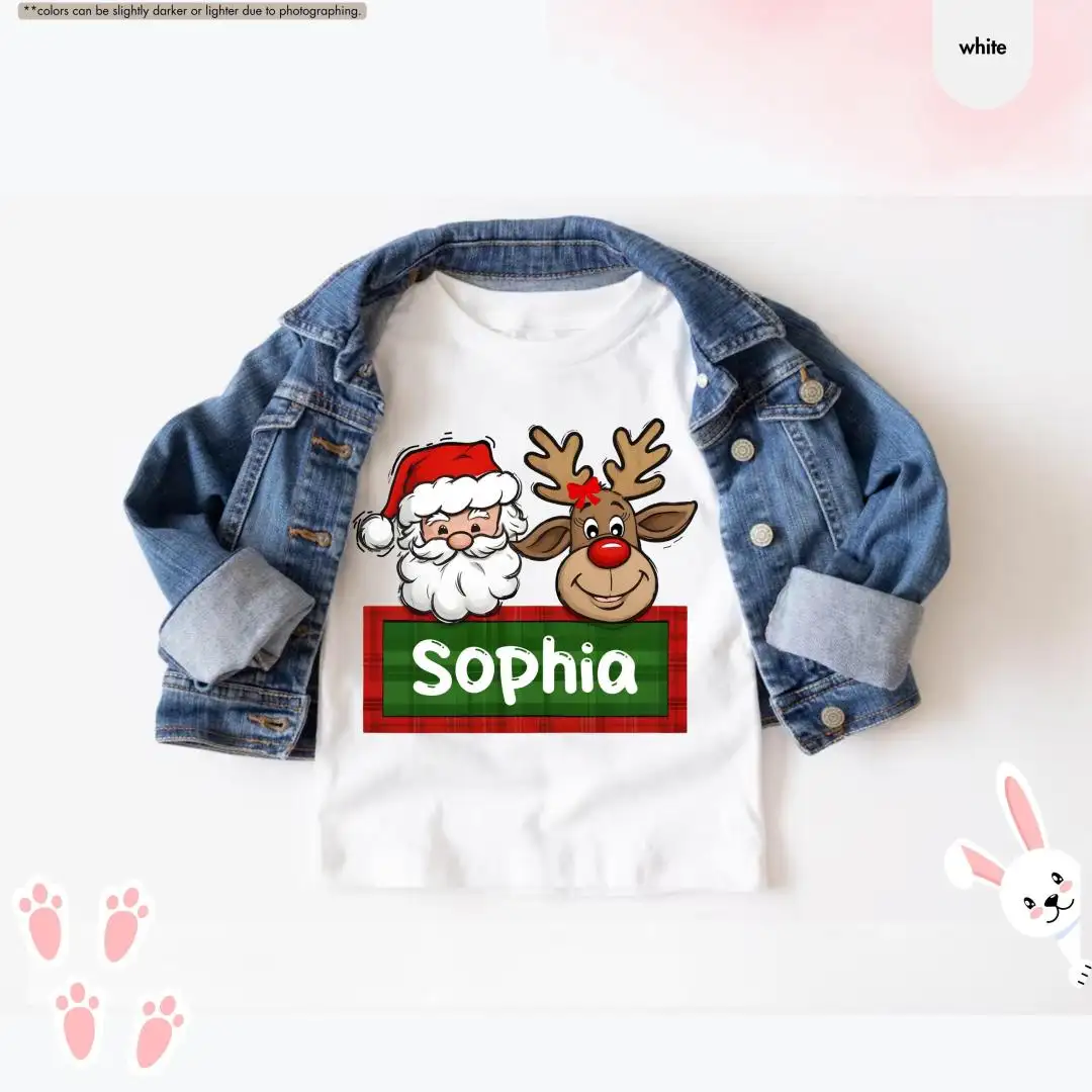 Personalized Christmas Name Shirt for Kids, Custom Baby Christmas Shirt, Santa Reindeer Shirt, Toddler Christmas Tee, Christmas Girl Gift