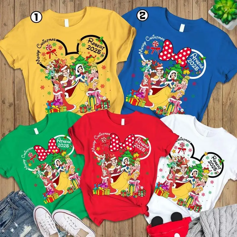 Personalized Disneyland 2025 Christmas Shirt Custom Disneyland Princess Christmas Shirt Mickey Very Merry Christmas Tee Family Xmas Shirt 06