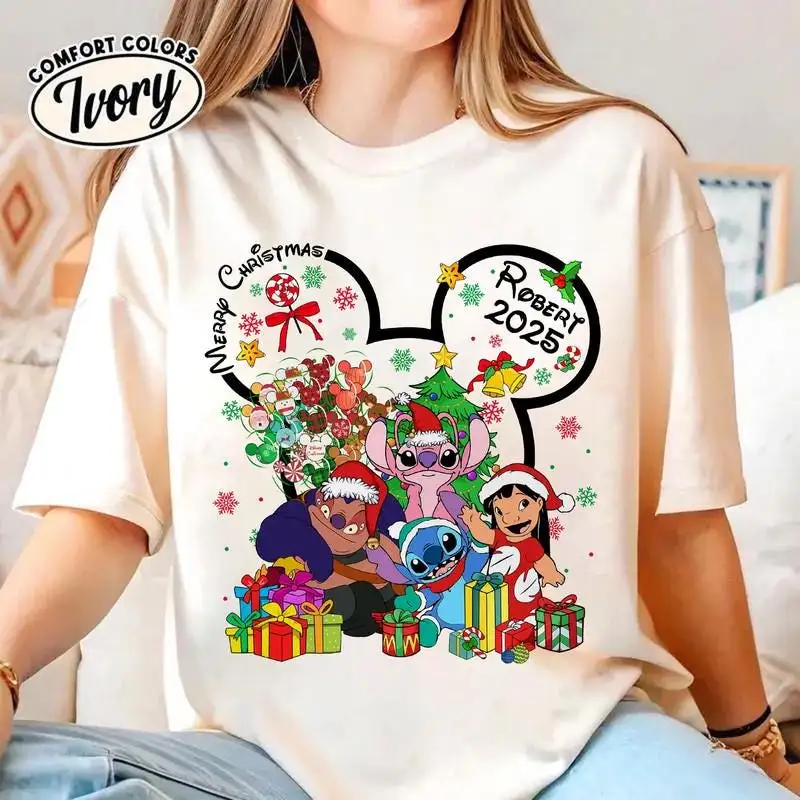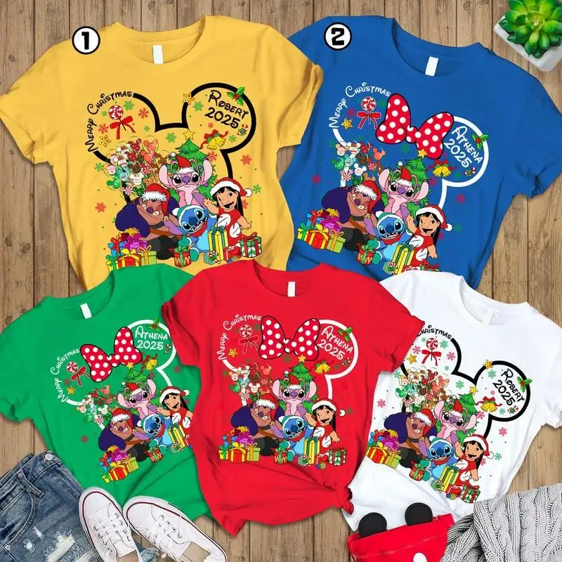Personalized Disneyland 2025 Christmas Shirt, Family Xmas Tee 08, Custom Lilo And Stitch Christmas Shirt, Mickey Very Merry Christmas Shirt
