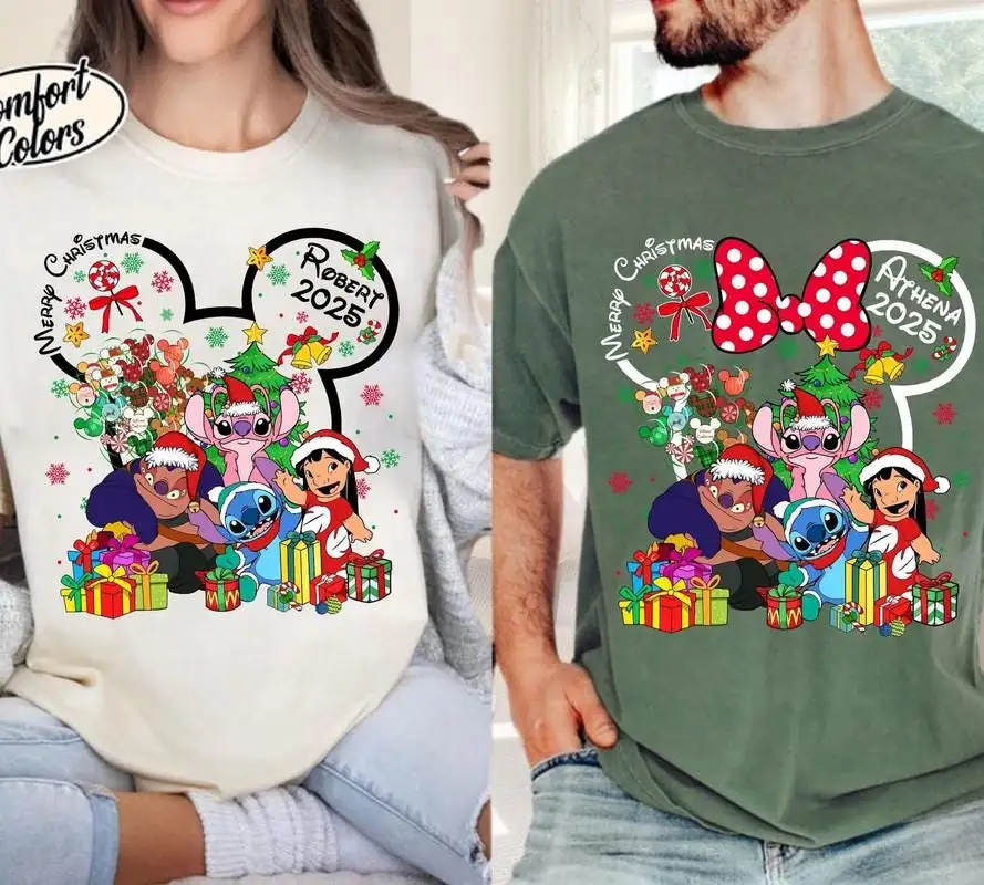 Review Personalized Disneyland 2025 Christmas Shirt, Family Xmas Tee 08, Custom Lilo And Stitch Christmas Shirt, Mickey Very Merry Christmas Shirt