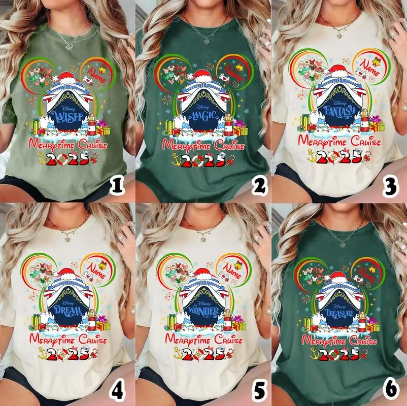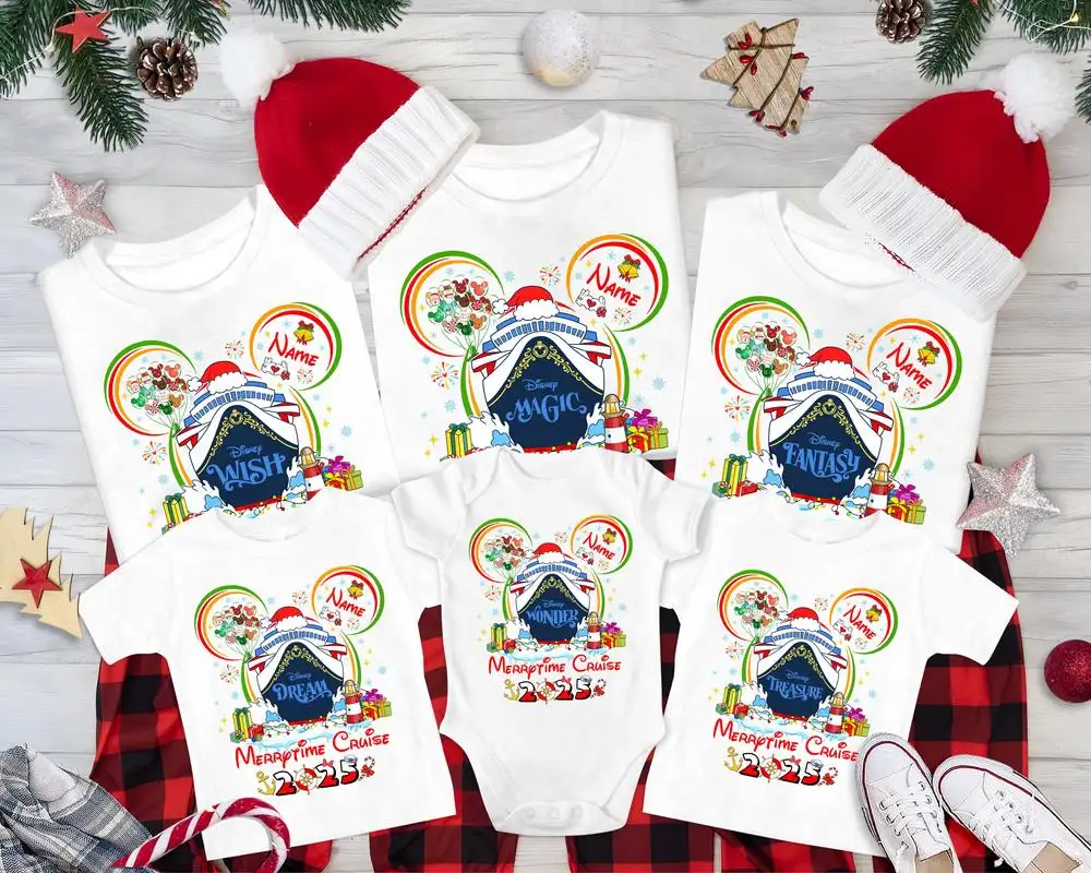 Personalized Disneyland Merrytime Cruise 2025 Shirt Disneyland Christmas Mickey Santa Claus Very Merry Cruise Tee Xmas Family Matching Tee