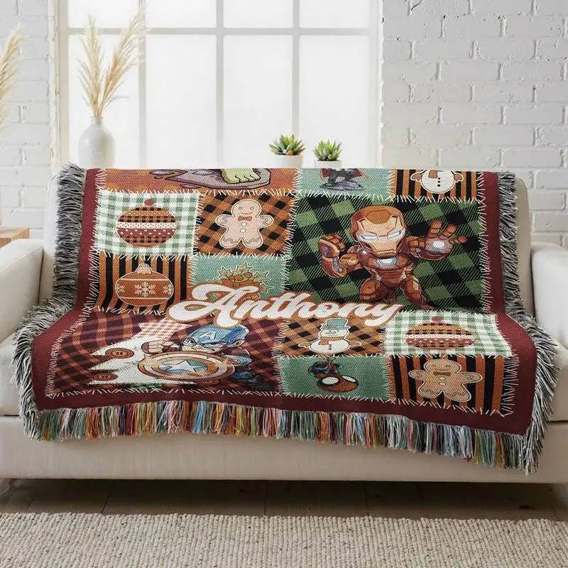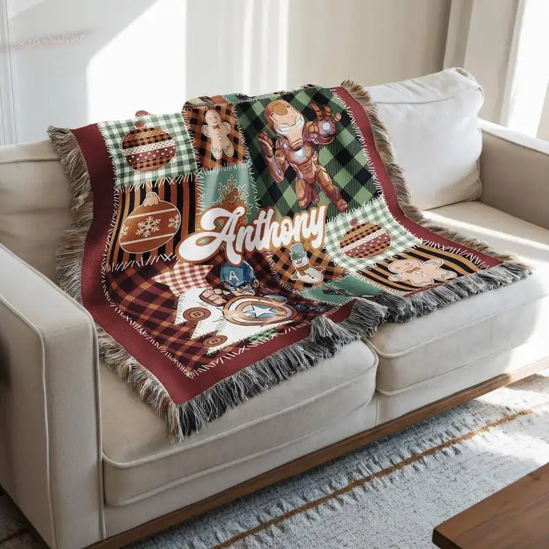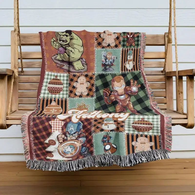 Personalized Mcu Christmas Woven Blanket, Disneyland Christmas Blanket, Captain America Iron Man Hulk Blanket, Superhero Christmas Blanket