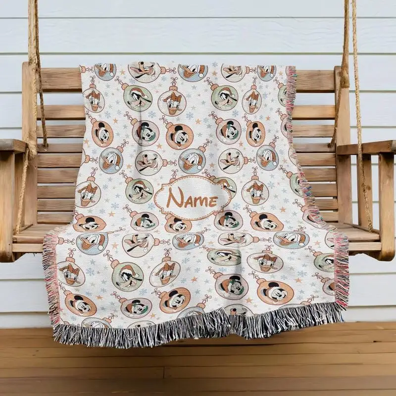 Personalized Mickey and Friends Christmas Woven Blanket Mickey Minnie Woven Blanket Custom Disneyland Christmas Blanket Xmas Gift 24