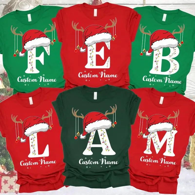 Personalized Monogrammed Family Christmas Shirt Custom Name Family Christmas Shirt Christmas Party Shirts Group Family Matching Xmas Shirt