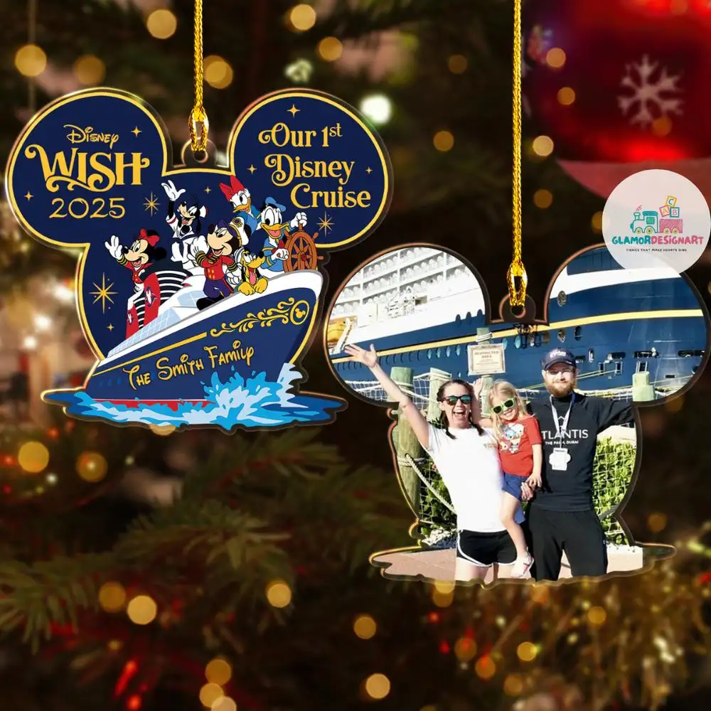 Personalized Photo Disney Cruise Line Ornament Disney Family Trip 2025 Ornament Disney Photo Ornament, Custom Family Vacation Photo Ornament