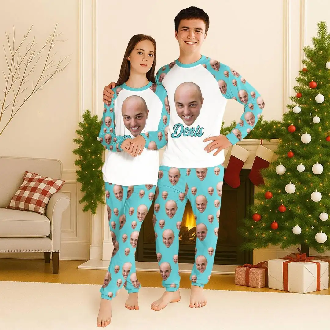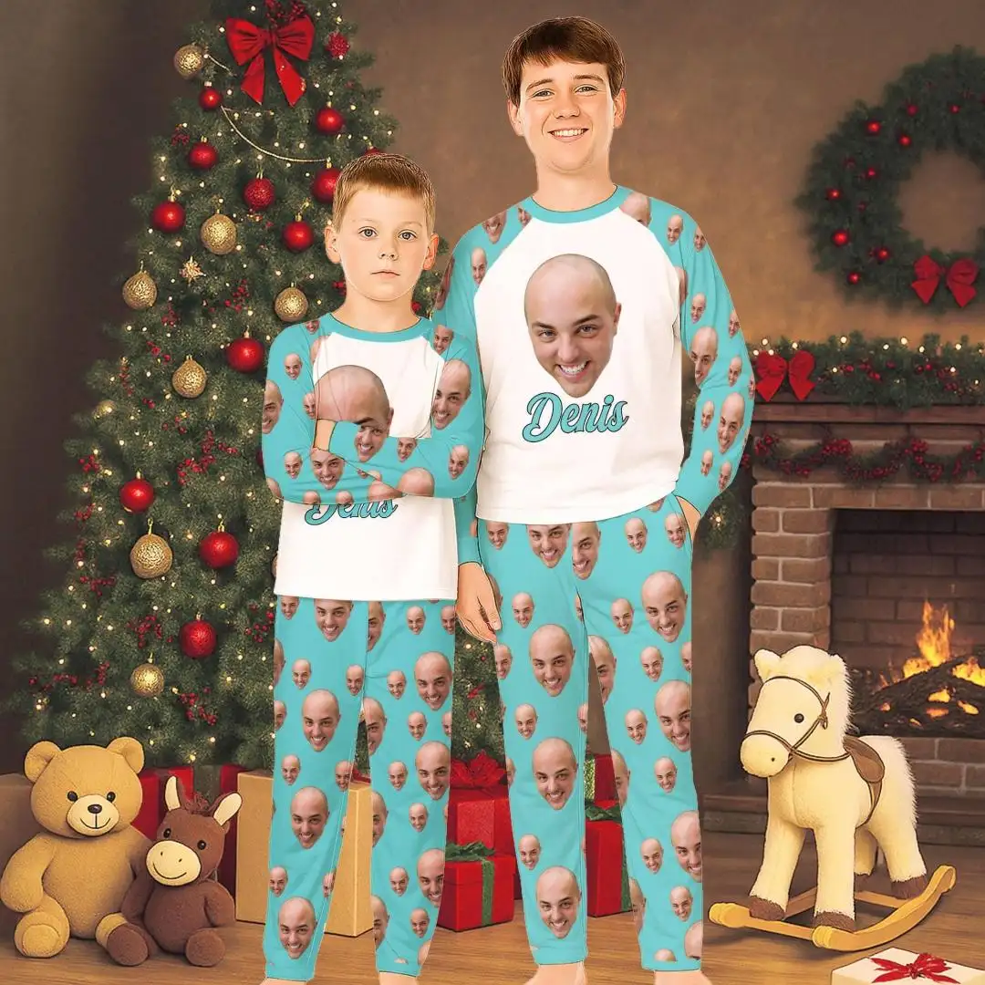 Personalized Photo Raglan Pajamas Custom Face Christmas Pajamas Set Custom Photo Family Matching Christmas Pajamas Photo Pajamas Xmas Gifts