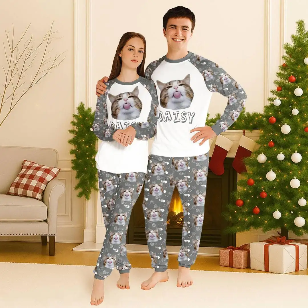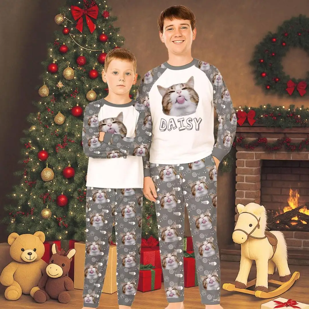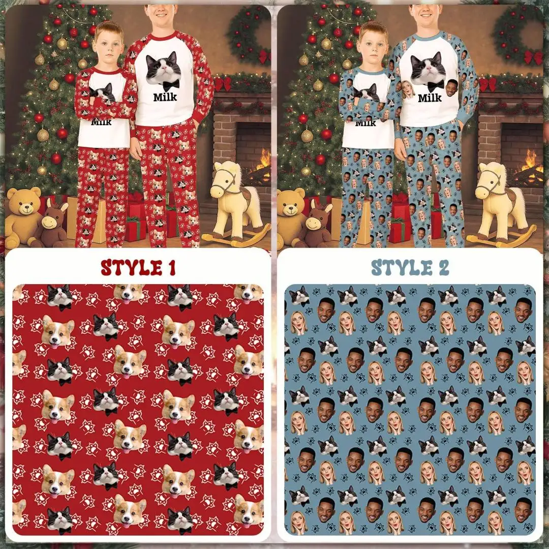 Personalized Photo Raglan Pajamas Custom Face Christmas Pajamas Set Custom Photo Family Matching Christmas Pajamas Photo Pajamas Xmas Gifts
