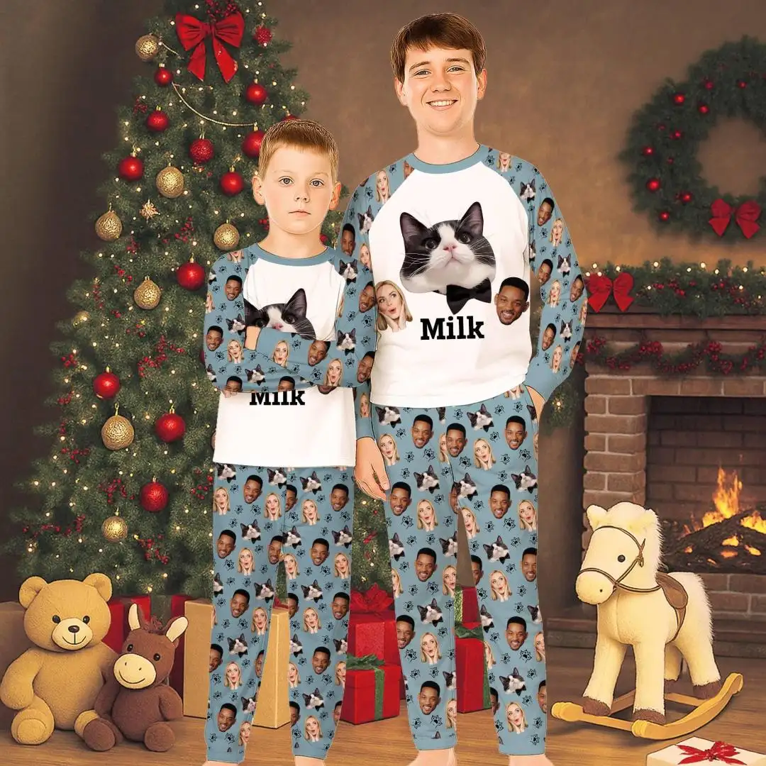 Personalized Photo Raglan Pajamas Custom Face Christmas Pajamas Set Custom Photo Family Matching Christmas Pajamas Photo Pajamas Xmas Gifts