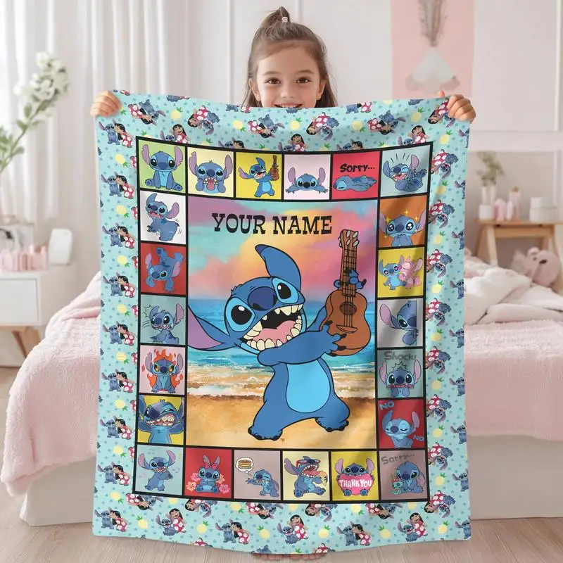 Personalized Stitch Fleece Blanket Custom Lilo Stitch Throw Blanket For Couch Sofa Ohana Means Family Blanket Disneyland Christmas Gift 07
