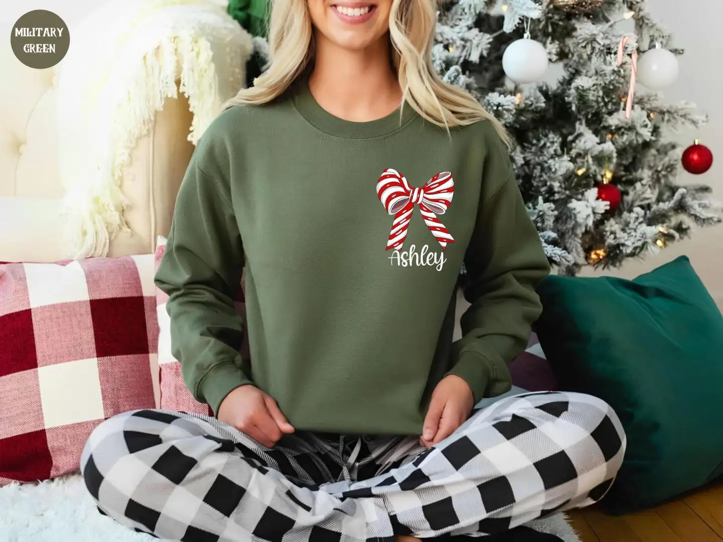 Review Personalized Women's Christmas Shirt, Kids Xmas Bow Shirt, Festive Gift Idea, Custom Name Christmas Shirt, Coquette Bow Holiday Tee