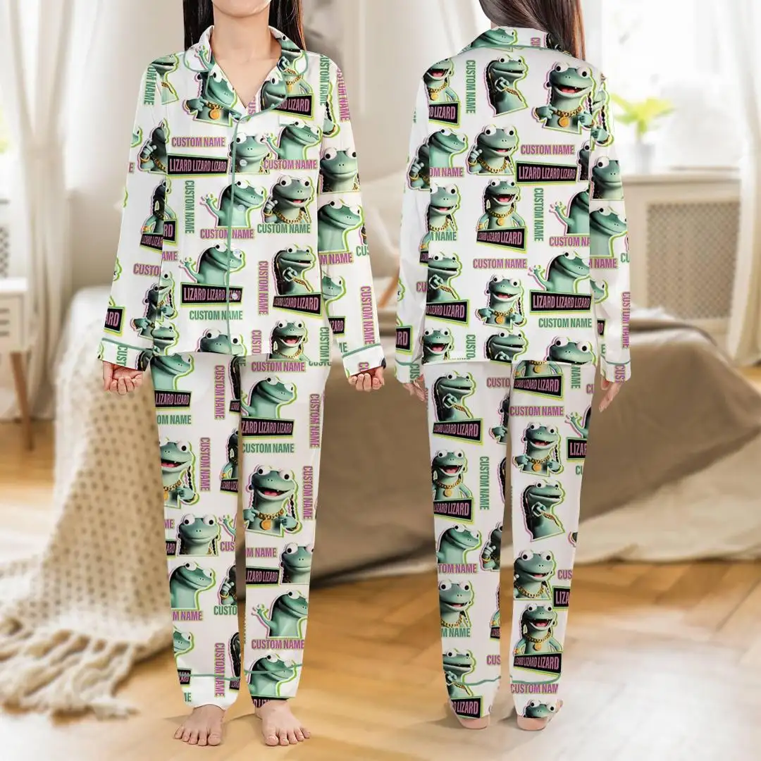 Pesonalized Lizard Lizard Lizard Meme Pajamas Set Funny Meme Lizard Pajamas Holiday Christmas Party Pajamas Set Family Matching Pajamas 04