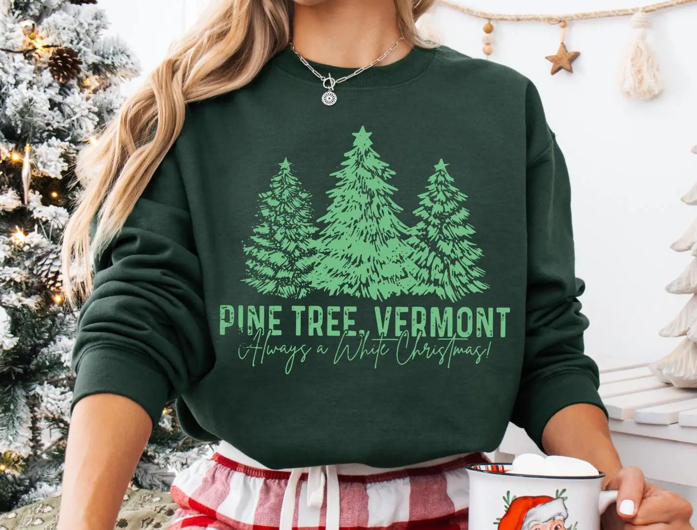 Pine Tree Vermont Christmas Tree Shirt, Family Xmas 2025 Tee, Xmas Movie Matching T-shirt, Always A White Christmas Sweatshirt