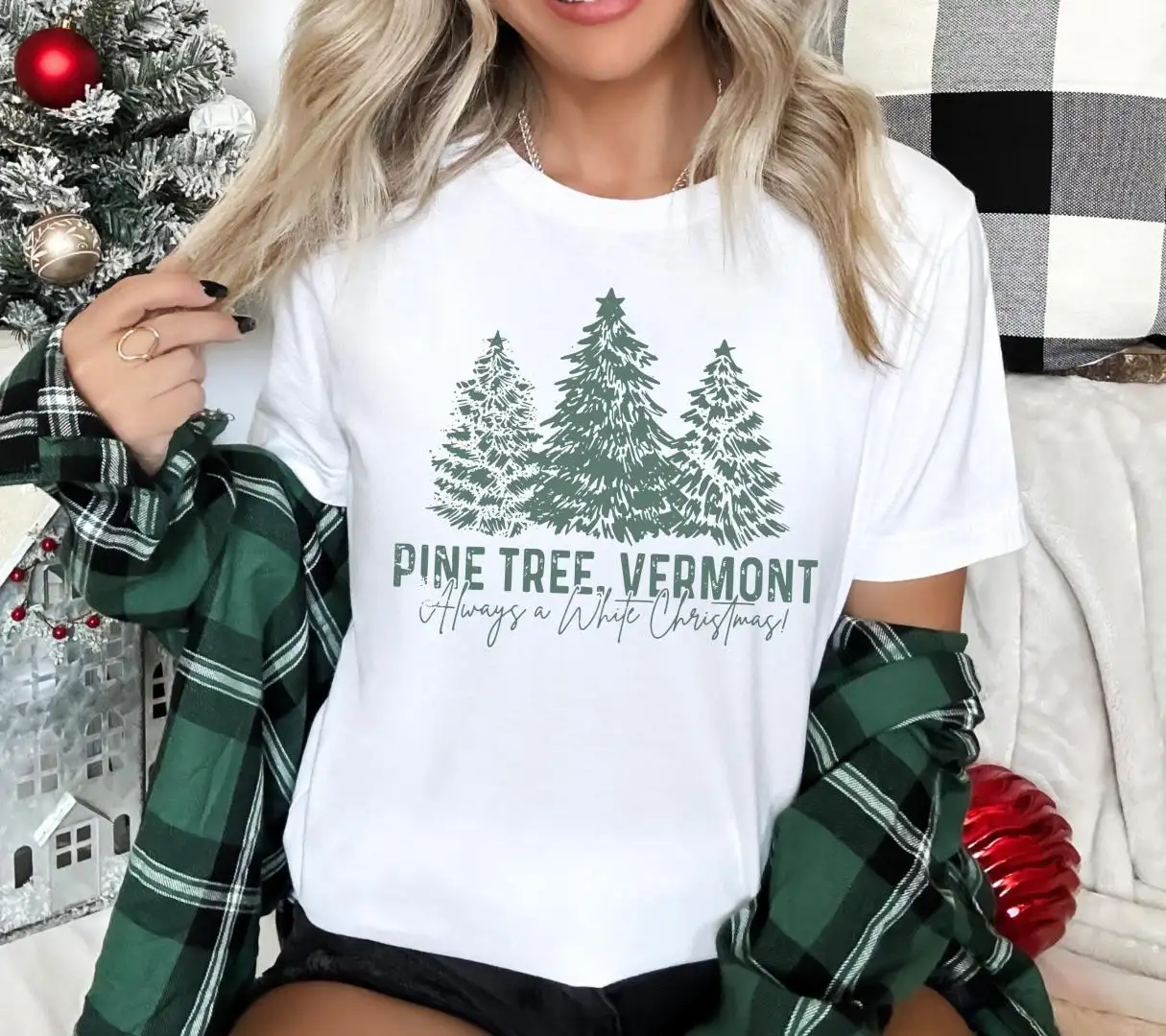 Review Pine Tree Vermont Christmas Tree Shirt, Family Xmas 2025 Tee, Xmas Movie Matching T-shirt, Always A White Christmas Sweatshirt