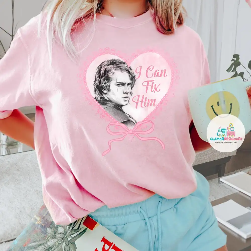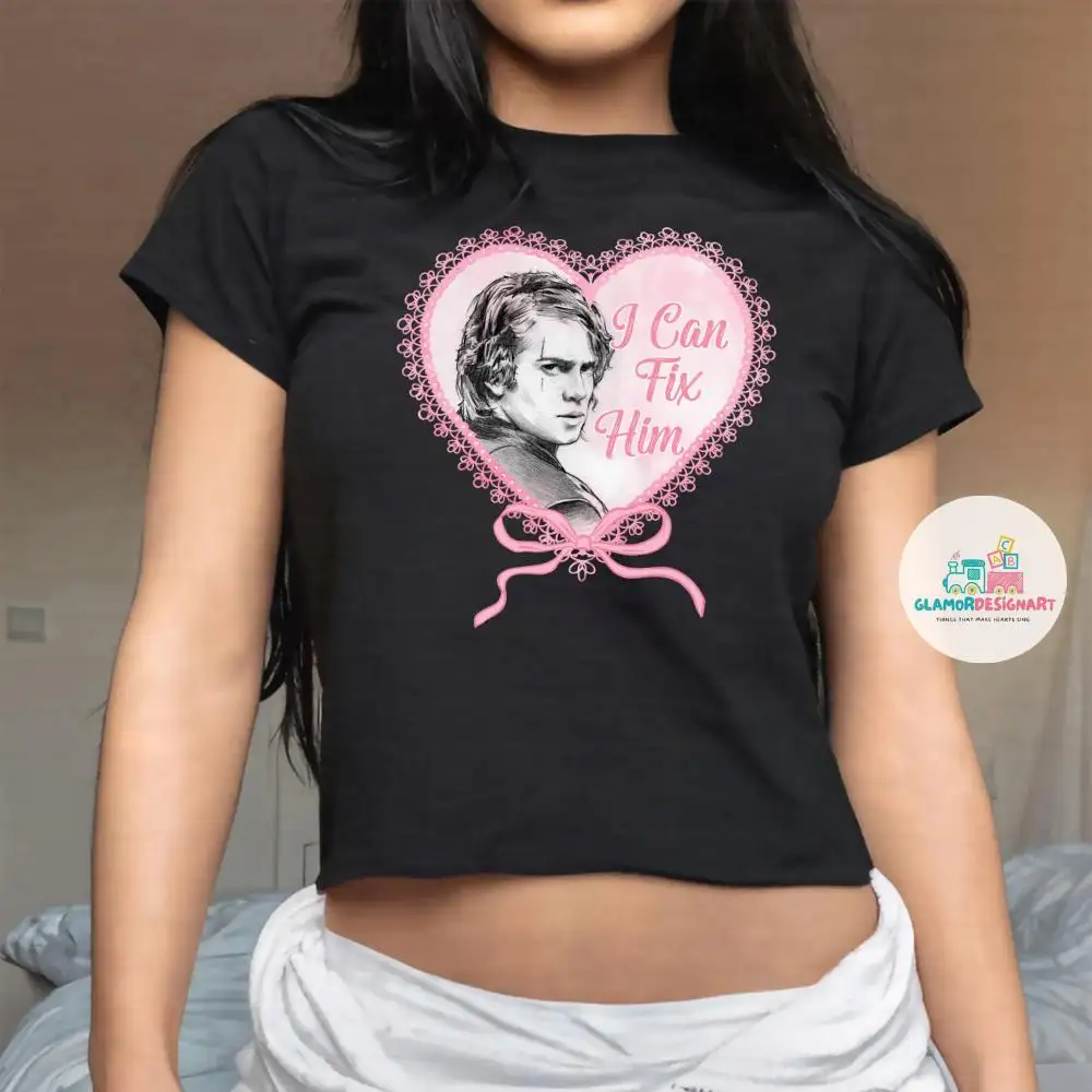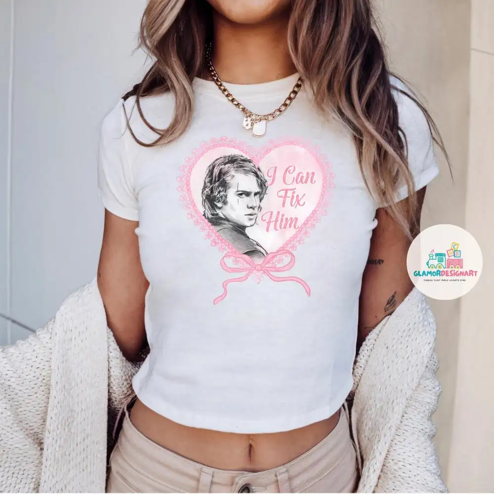 Pink Coquette Bow Star Wars Anakin Skywalker I Can Fix Him Baby Tee Croptop Tank, May the Forth Be With You, Galaxy's Edge Disney T-shirt