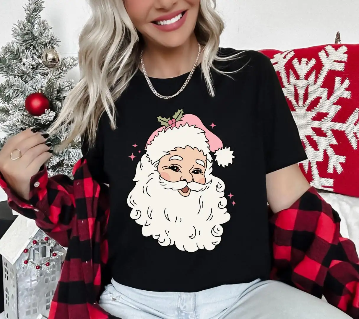 Review Pink Santa Retro Christmas T-Shirts, Pink Christmas Matching Family Tees, XMAS Holiday Sweatshirt, Santa Claus Girls Hoodie