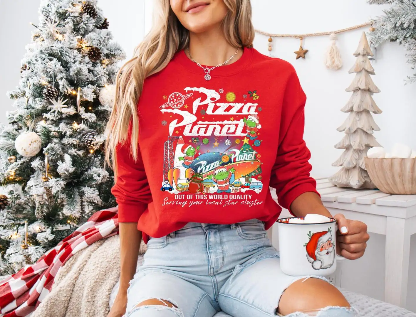 Review Pizza Planet Toy Story Christmas Shirt, Mickey's Very Merry Christmas Sweatshirt, Disney Aliens Toy Story Pizza Planet WDW Xmas Shirt