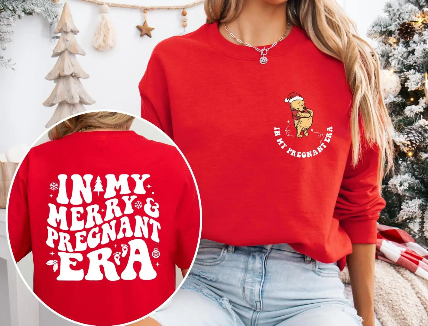 Pregnancy Reveal Christmas Shirt with Disney Pooh Bear