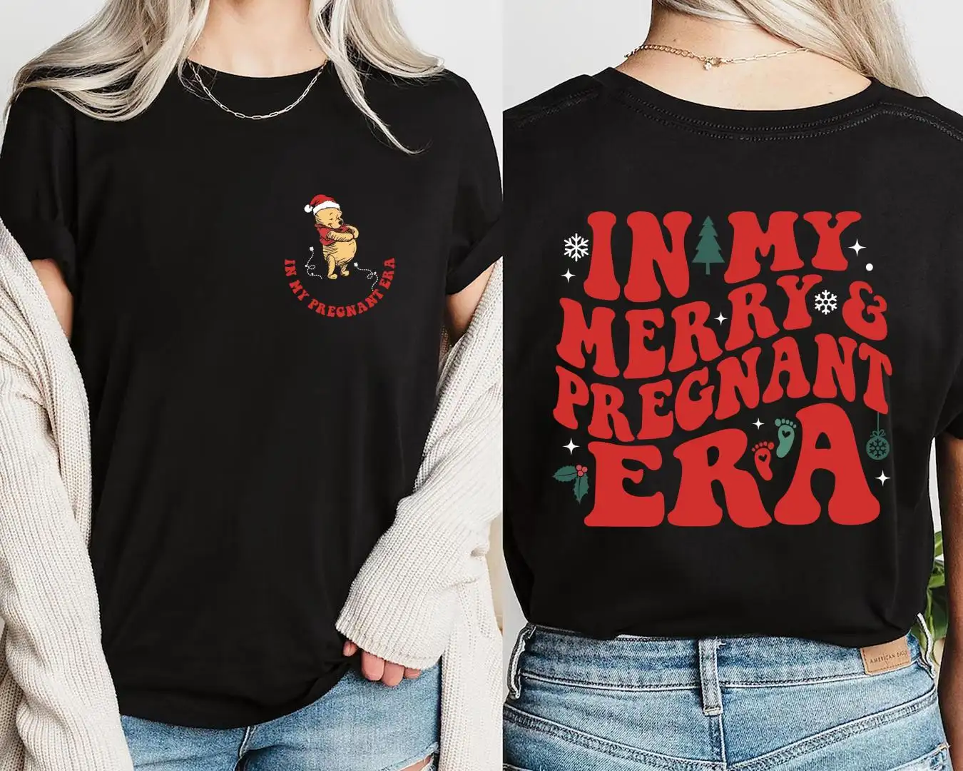 Review Pregnancy Reveal Christmas Shirt with Disney Pooh Bear