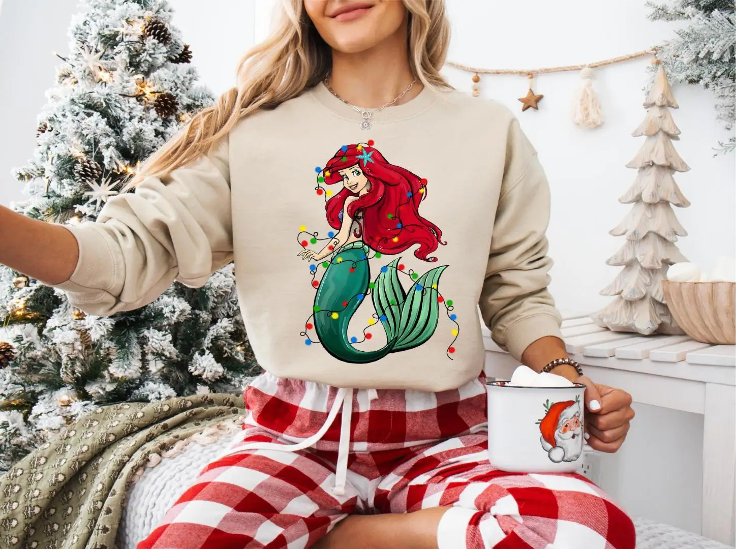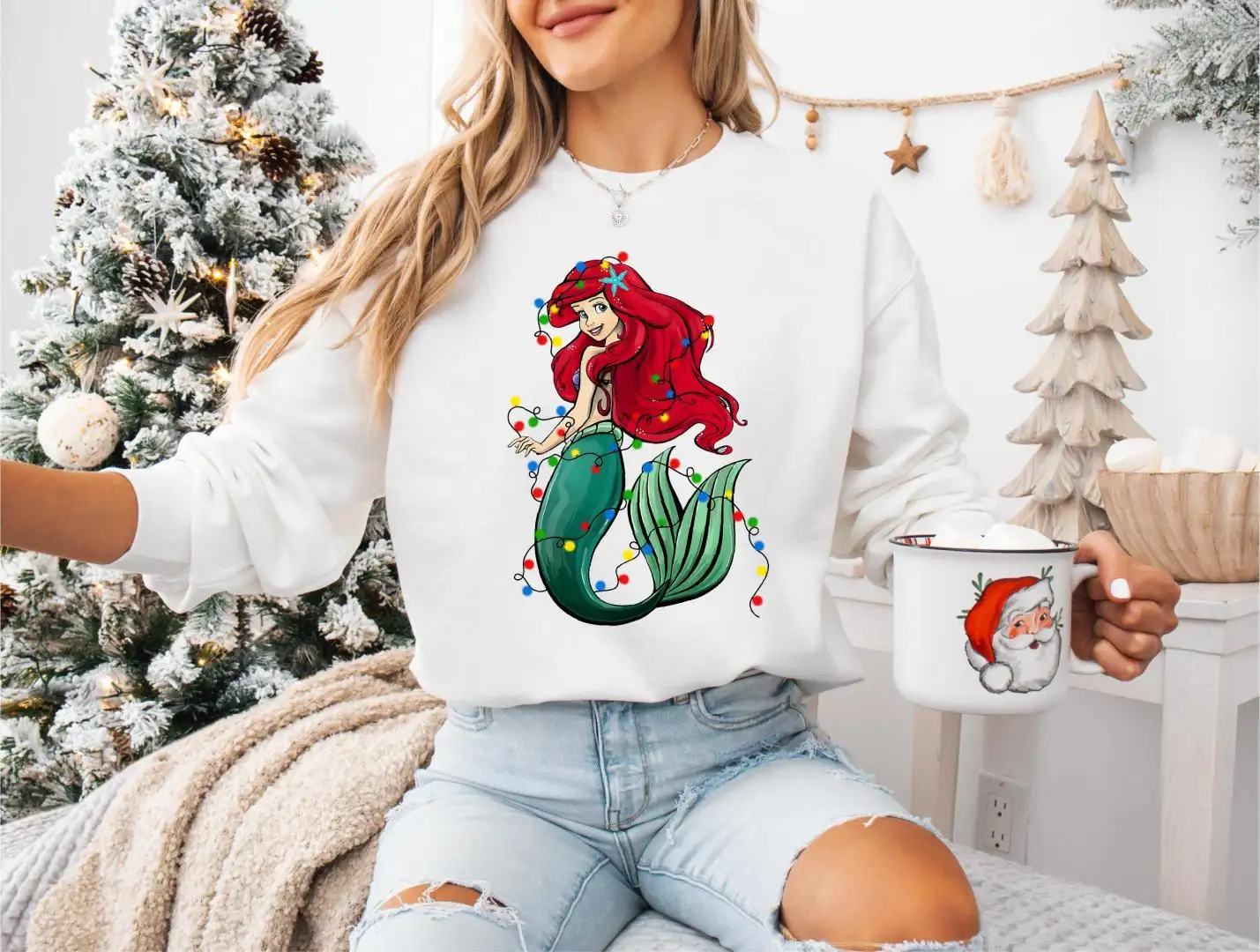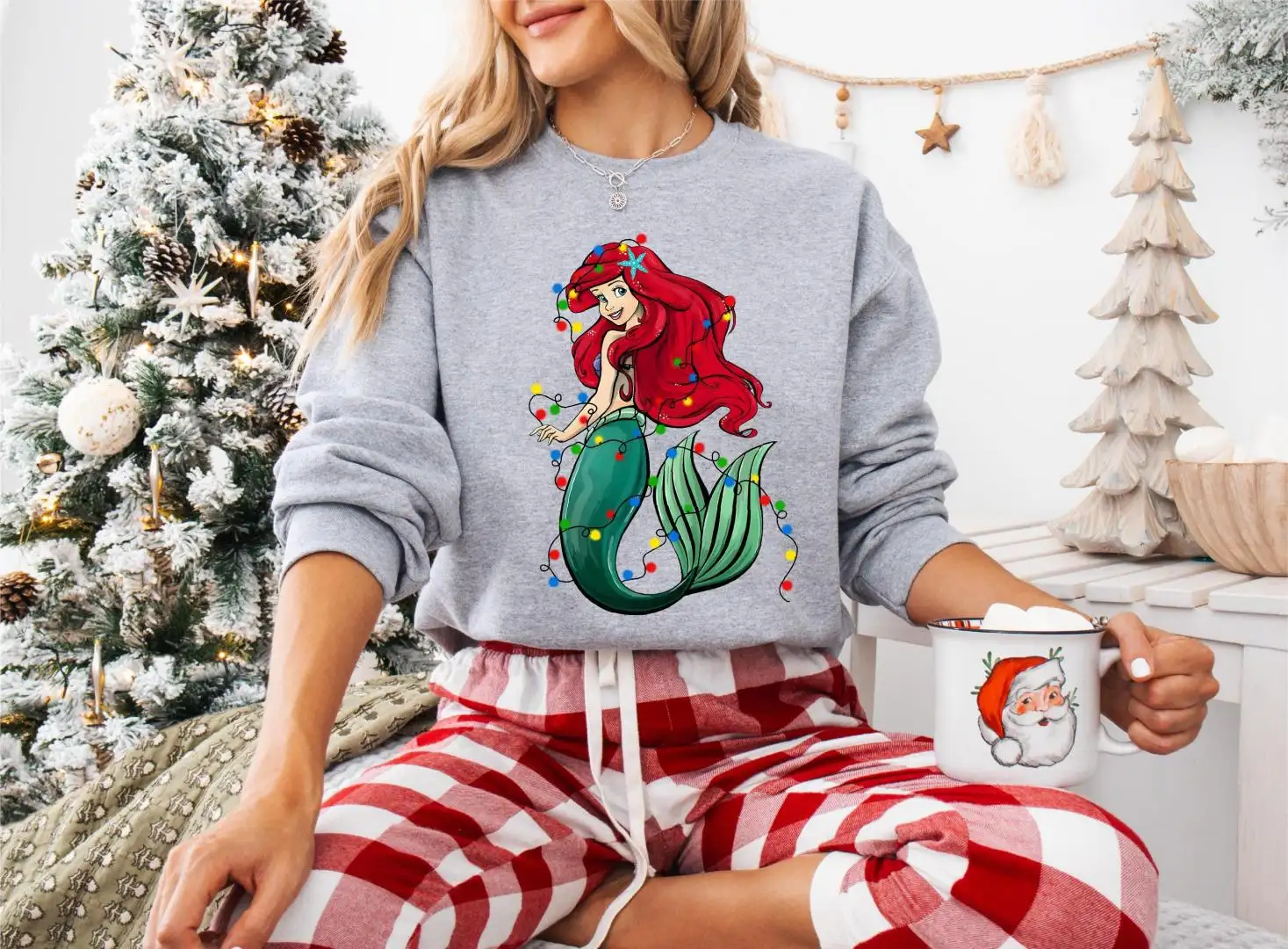 Princess Ariel Christmas Shirt, Disney Christmas Girls Trip Sweatshirt, Ariel Xmas Lights Tee, Disneyland Family Christmas Hoodie