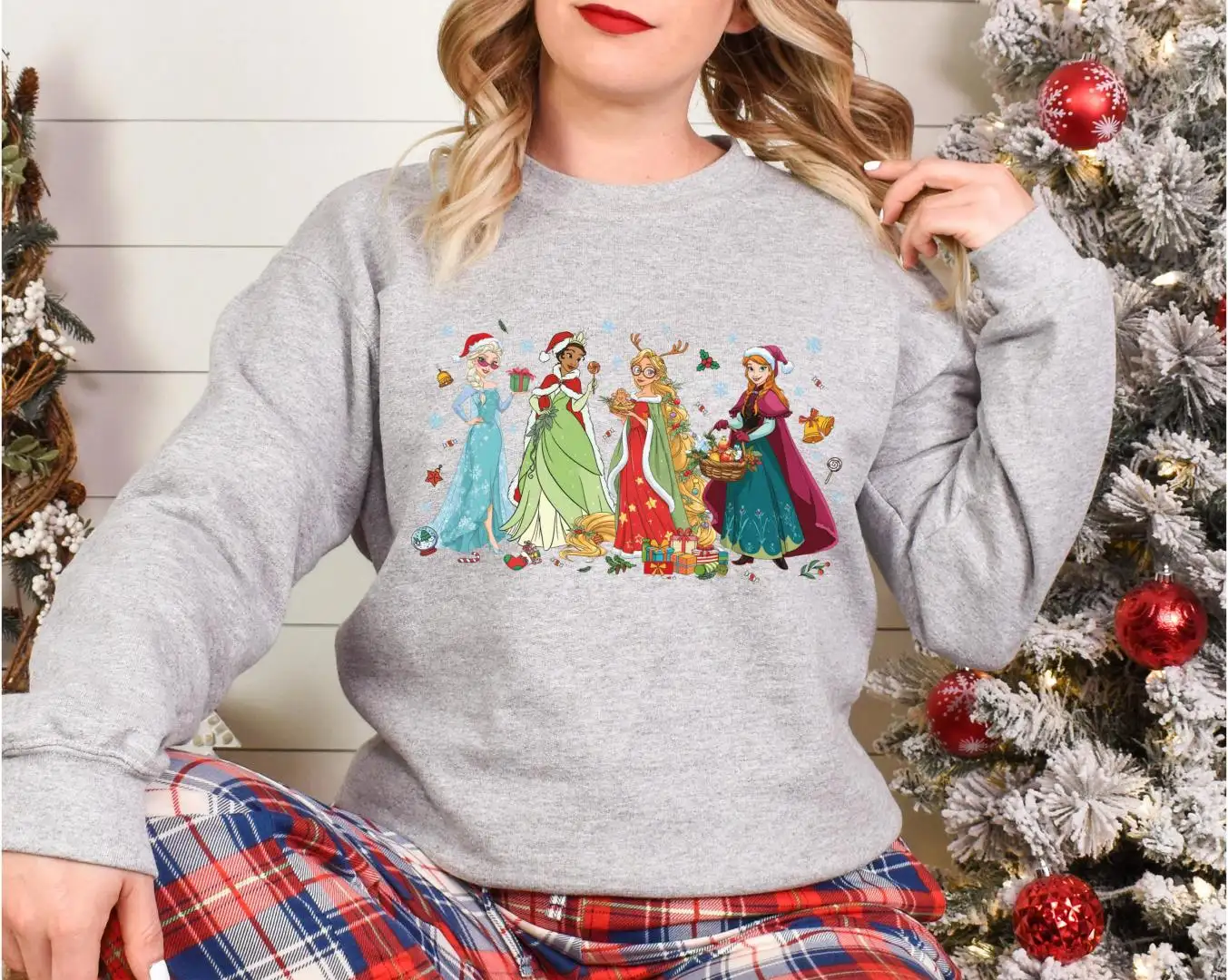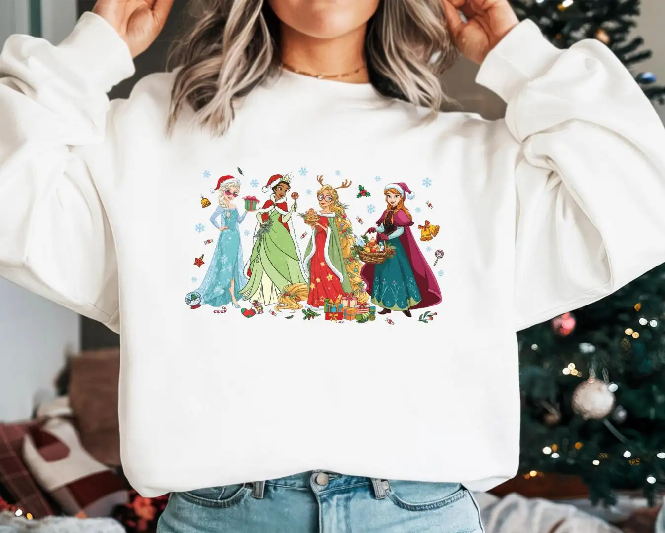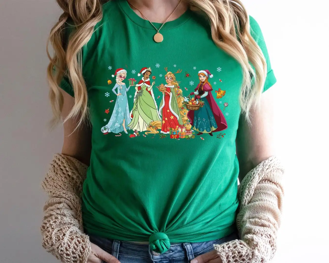 Princess Christmas Shirt, Christmas Trip Women Tee, Disney Girls Christmas Party Tees, Disneyland Holiday Gift, Elsa Tiana Rapunzel Xmas Tee