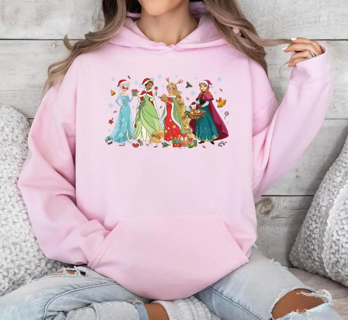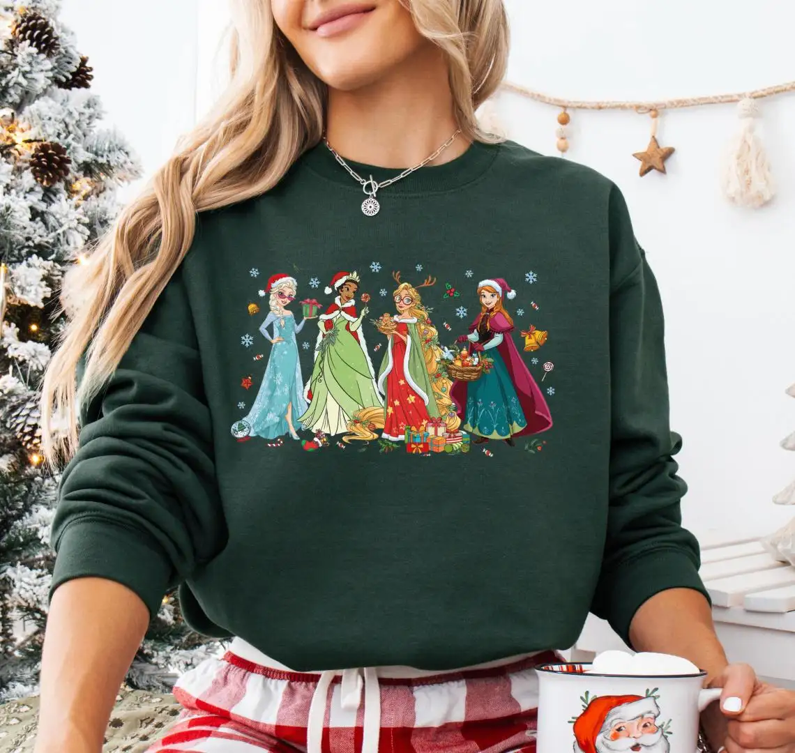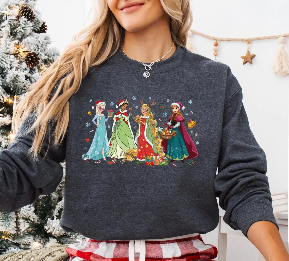 Princess Christmas Shirt, Christmas Trip Women Tee, Disney Girls Christmas Party Tees, Disneyland Holiday Gift, Elsa Tiana Rapunzel Xmas Tee