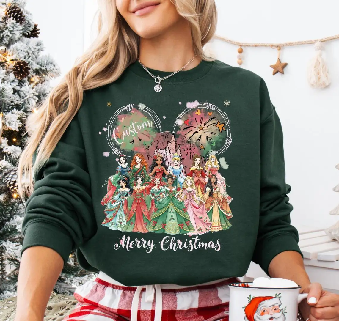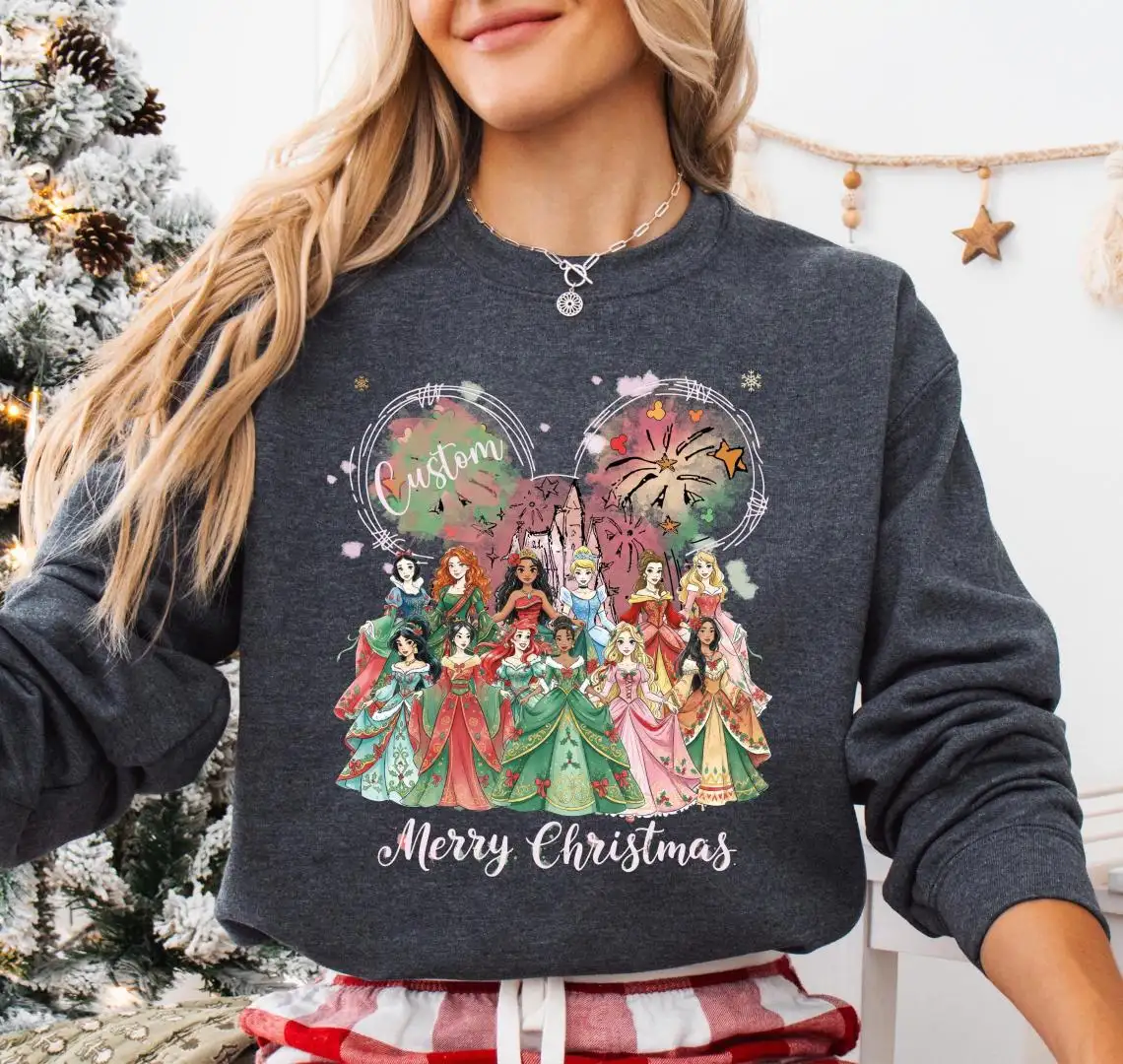Princess Christmas Sweatshirt, Disney Castle Christmas Sweater, Custom Disney Girls Xmas Trip Shirt, Disneyland Holiday T-Shirt