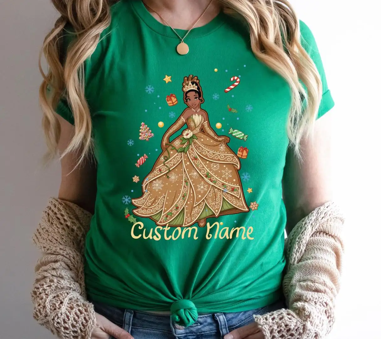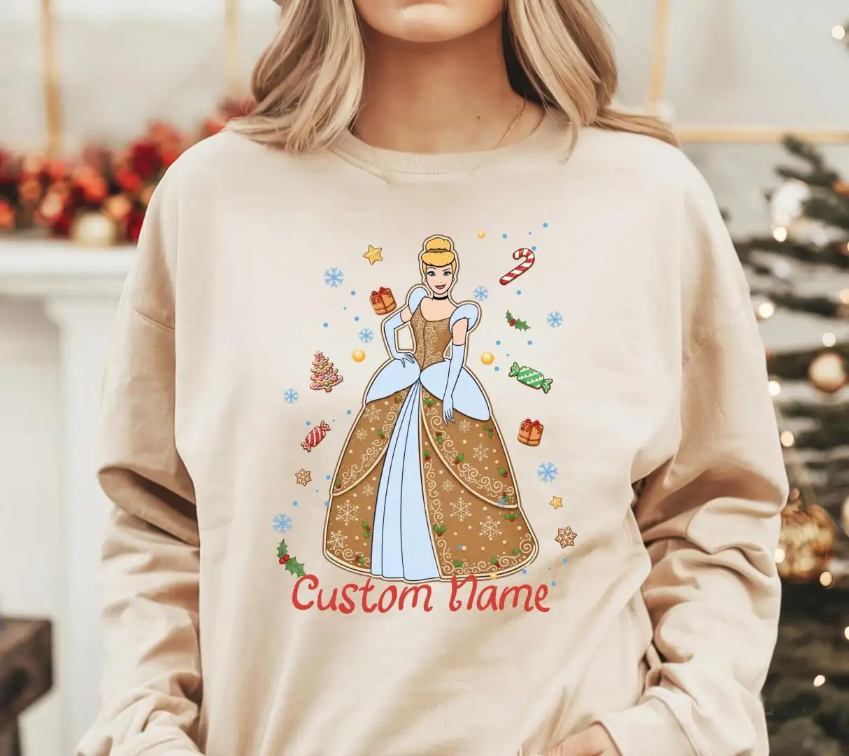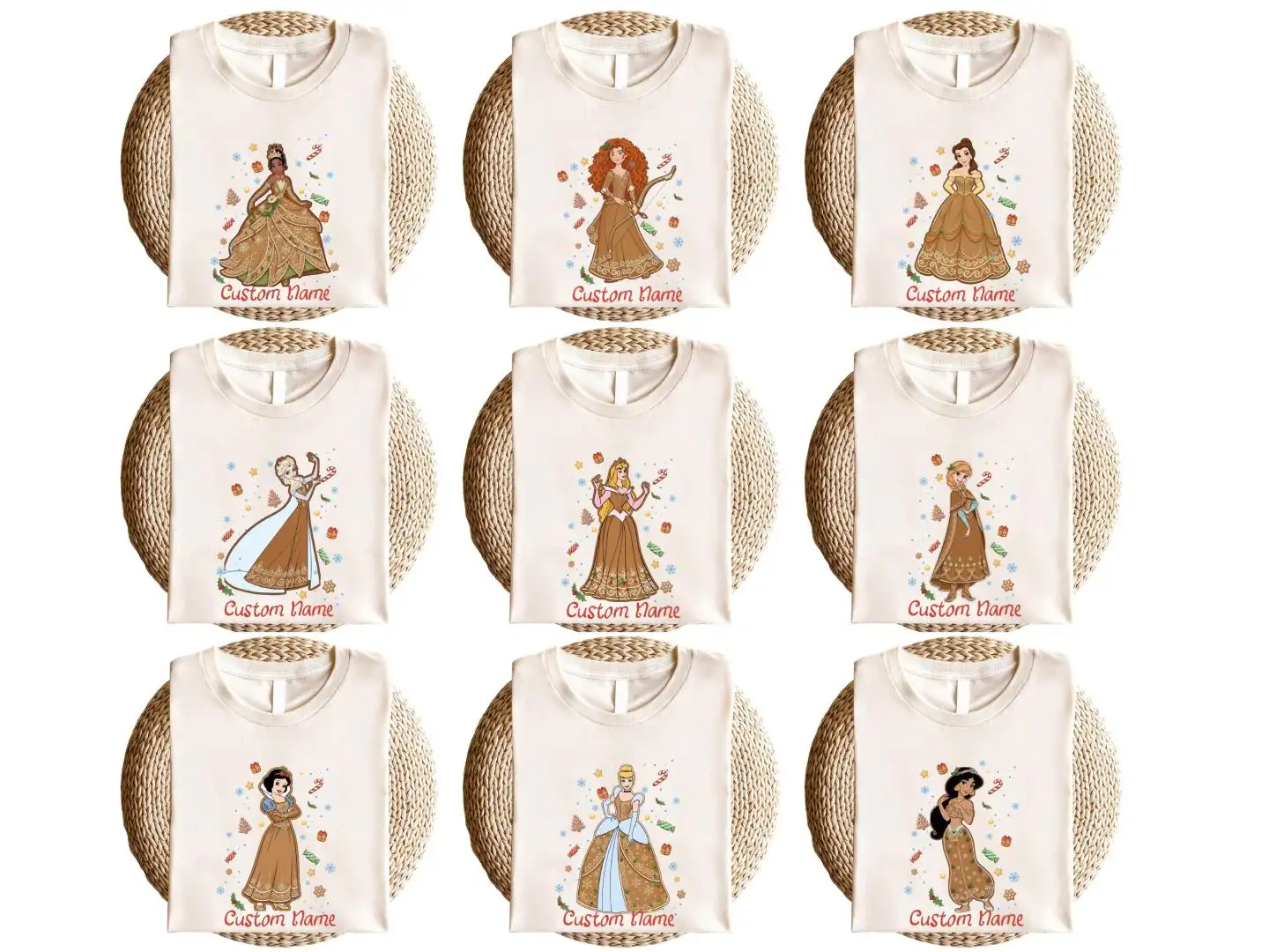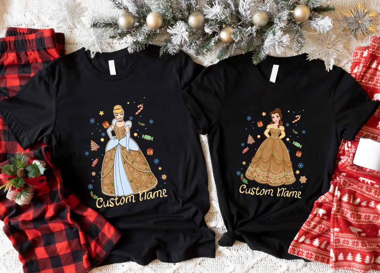 Princess Gingerbread Christmas Shirt, Disneyland Christmas Party 2025 Sweater, Custom Disney Princess Xmas Cookie Shirt, Girls Trip Xmas Tee