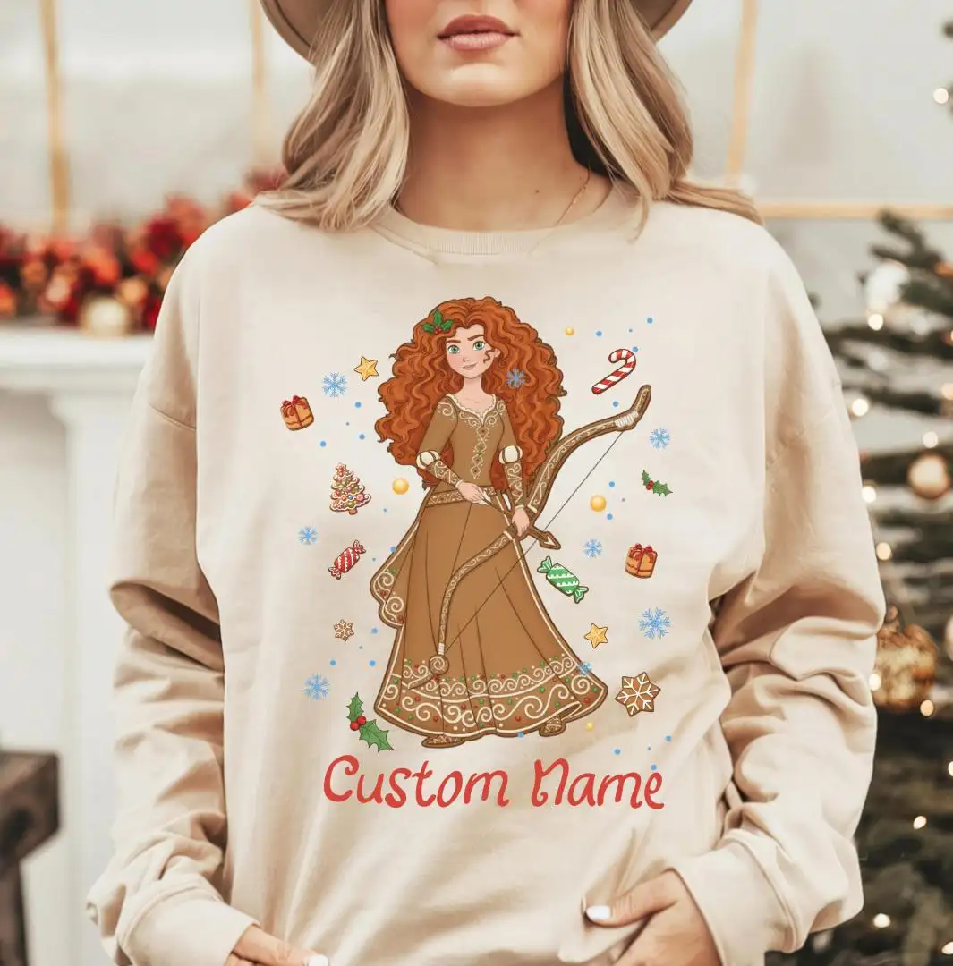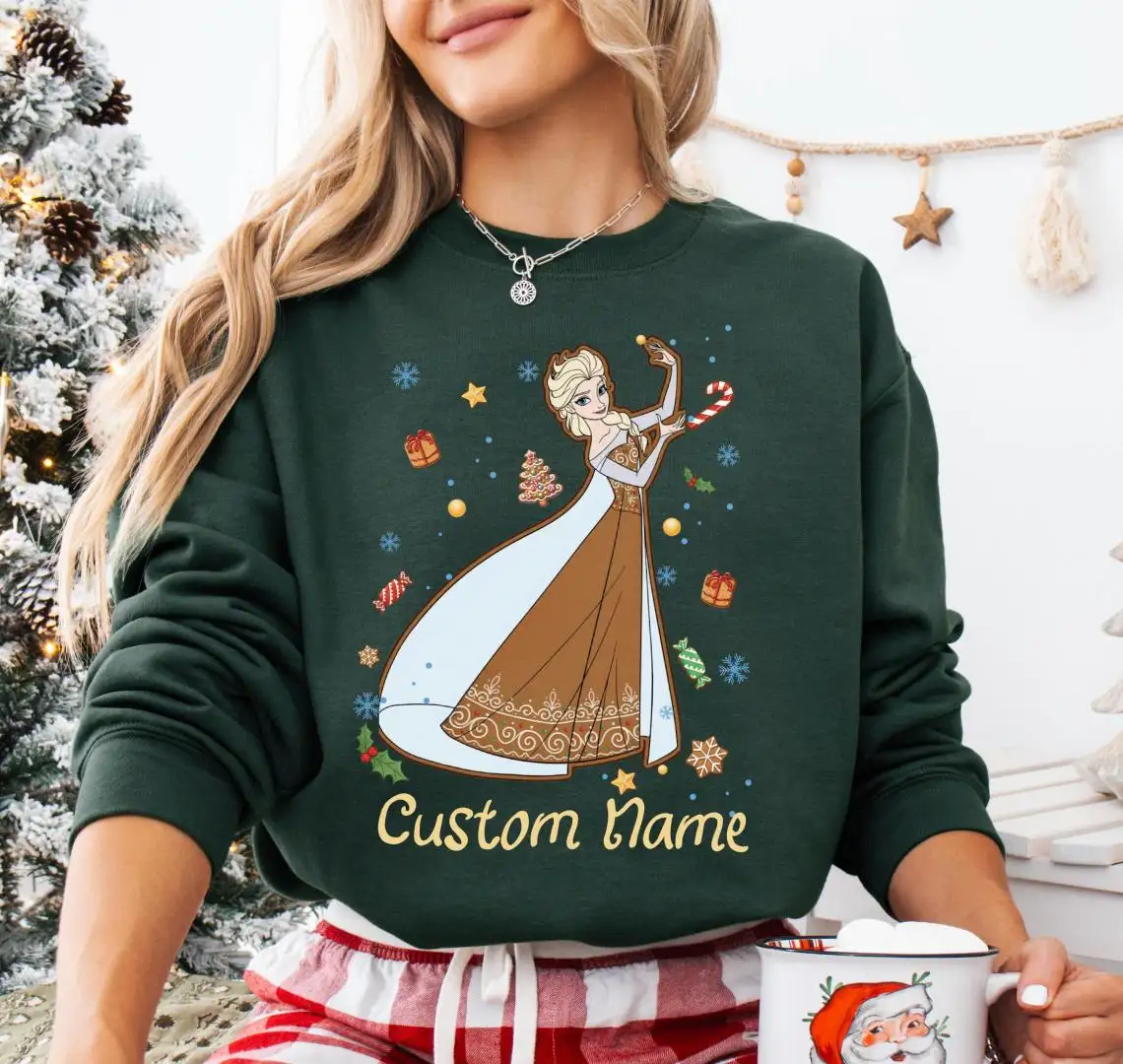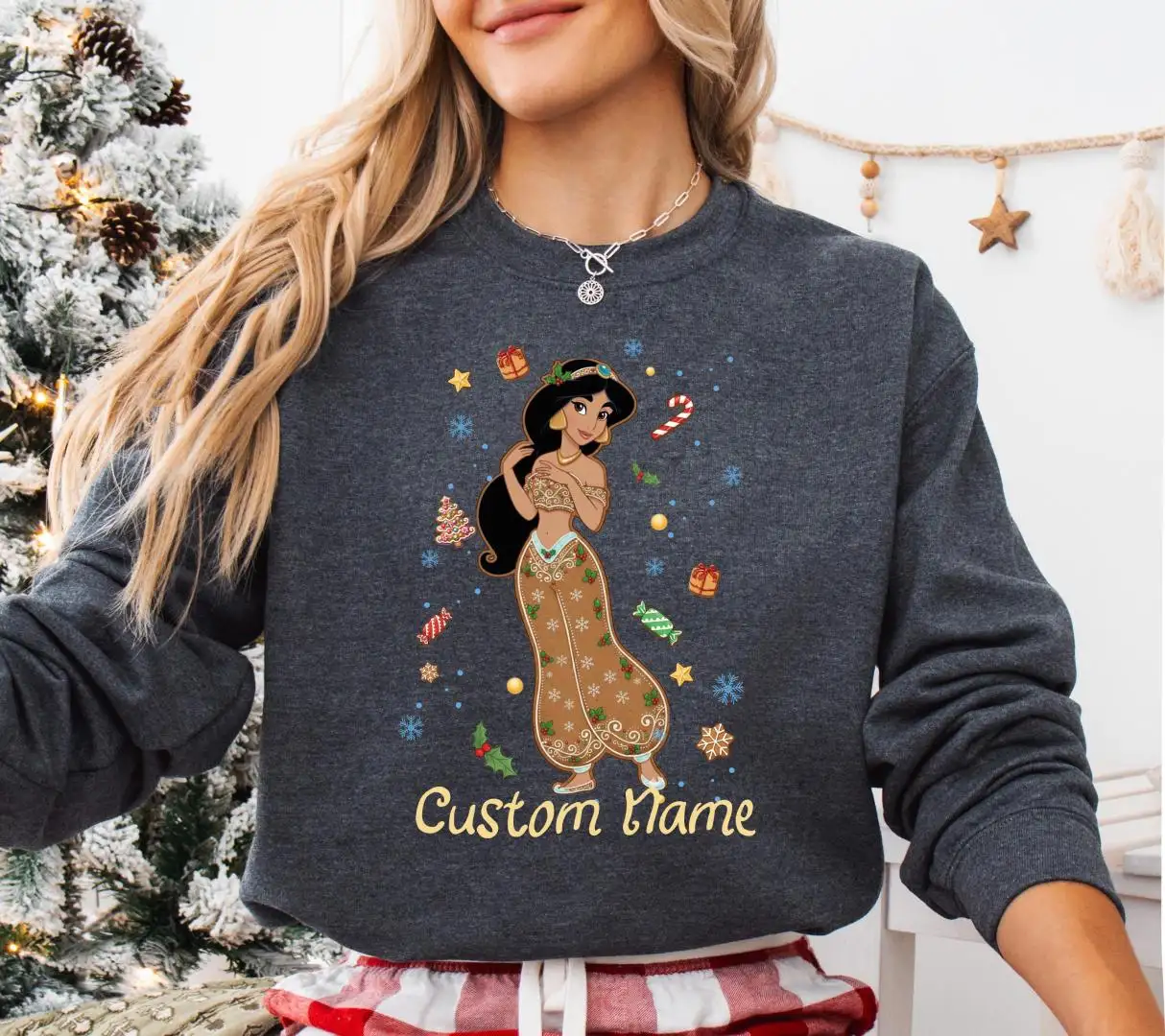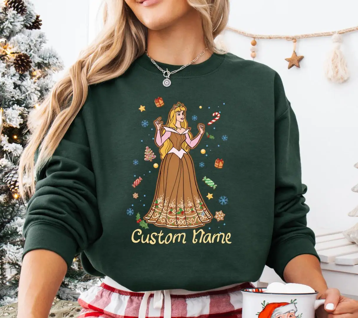 Princess Gingerbread Christmas Shirt, Disneyland Christmas Party 2025 Sweater, Custom Disney Princess Xmas Cookie Shirt, Girls Trip Xmas Tee