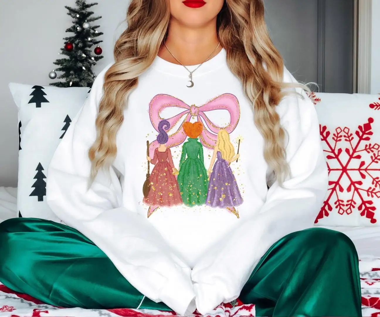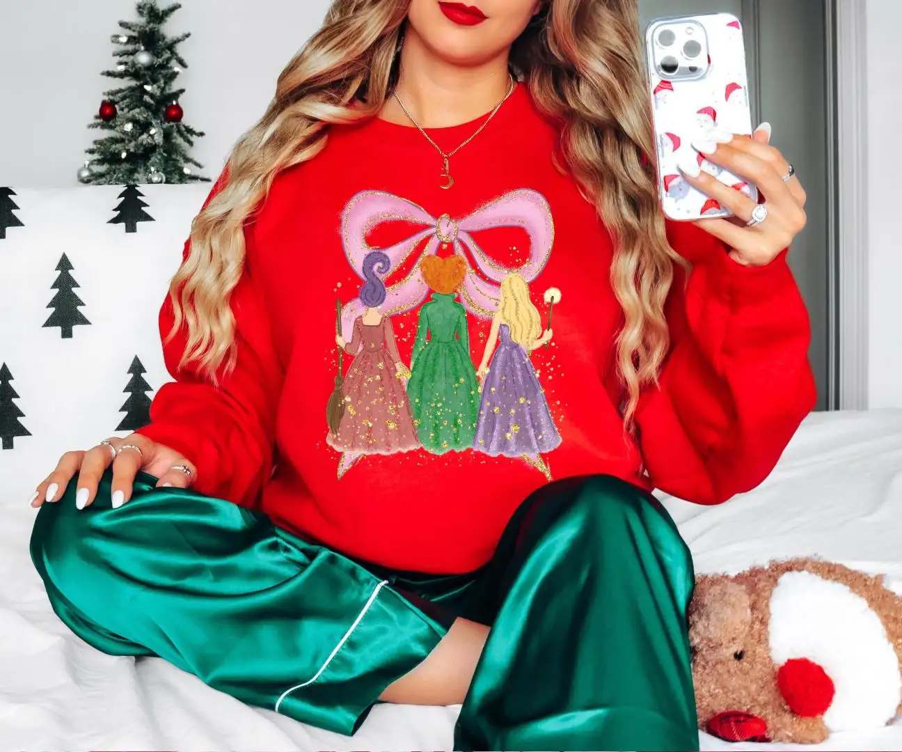 Princess Pink Bow Christmas Shirt, Disney Coquette Xmas Shirt, Princess Christmas Sweatshirt, Girls Xmas Trip Tee, Disneyland Holiday Tee