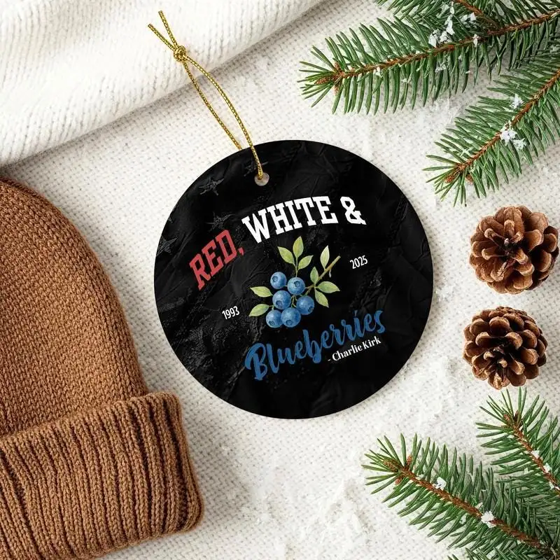 Red White And Blueberries Ornament, Charlie Kirk 1993-2025 Ornament, Memorial Freedom Gift, Memory Patriotic Keepsake 01, Turning Point USA