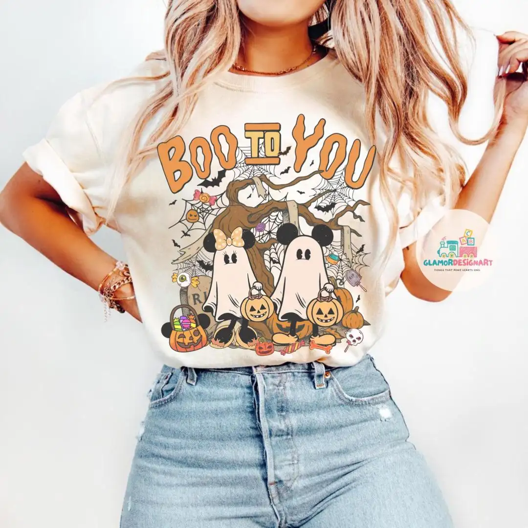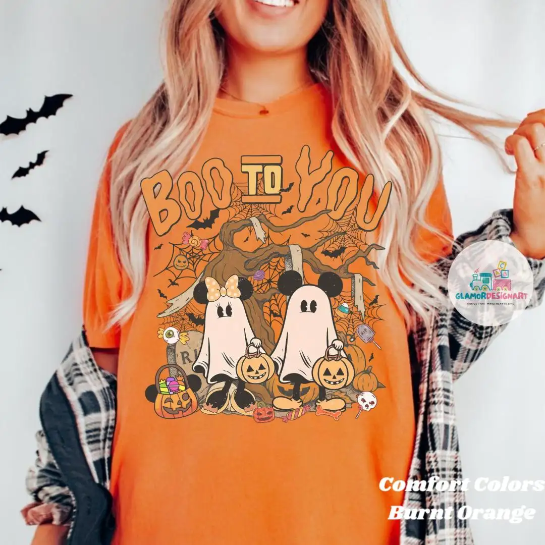 Retro Boo To You Mickey Minnie Ghost Pumpkin Shirt, Mickey's Not So Scary Halloween Party Tee, Mickey Spooky Season Halloween Costume Shirt