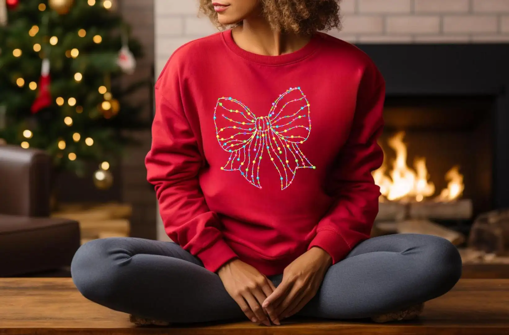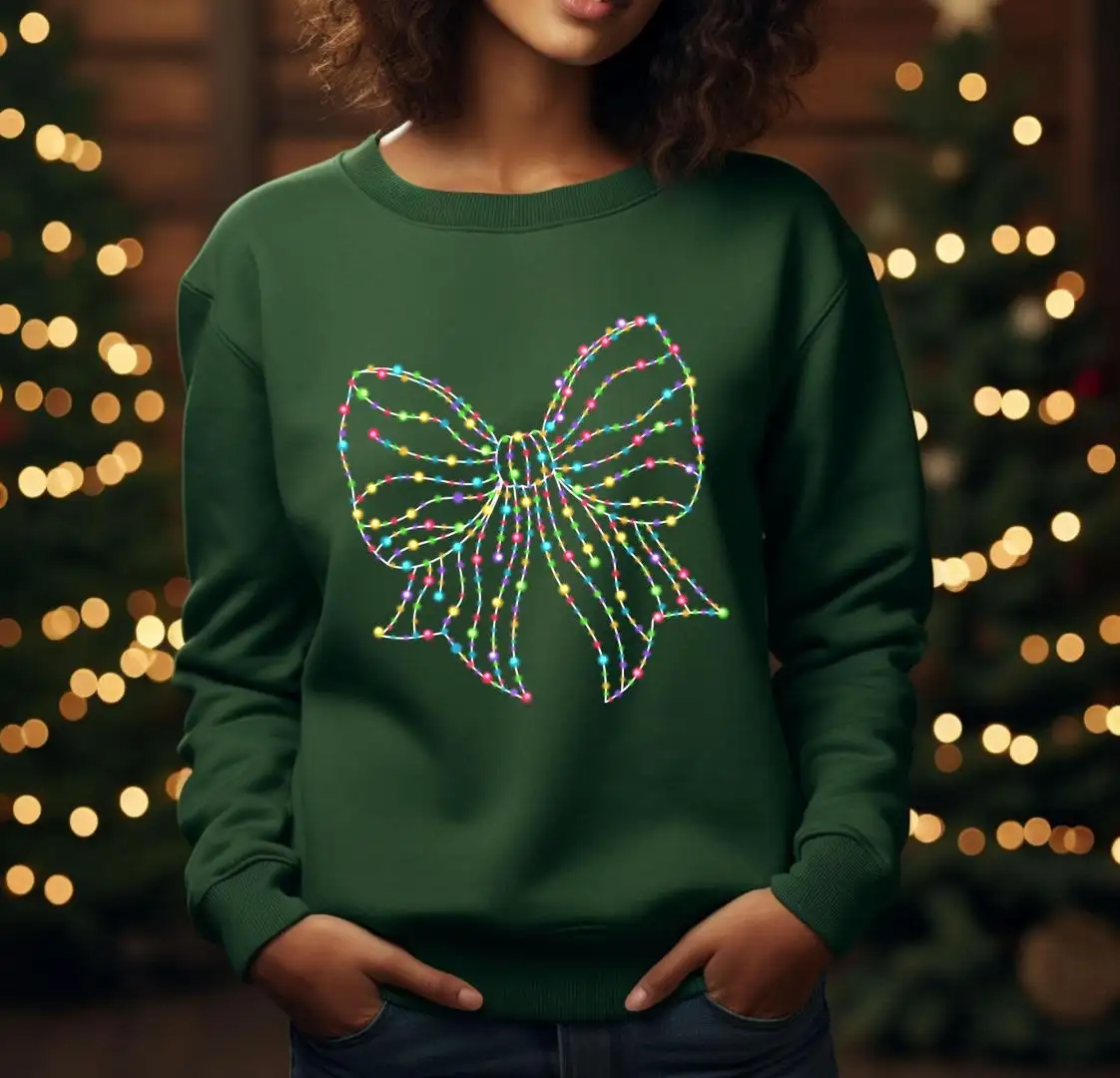 Retro Christmas Light Bow Shirt for Women