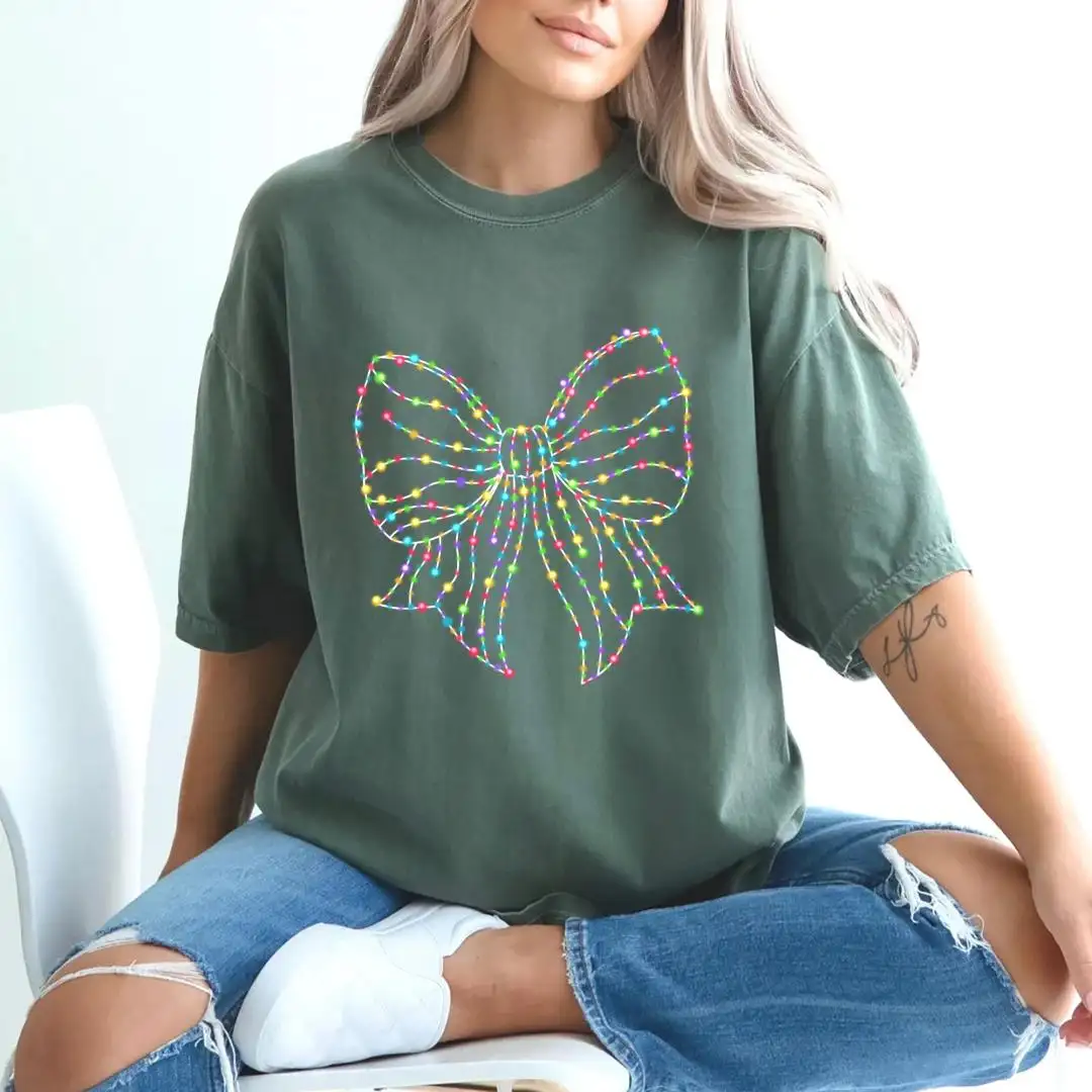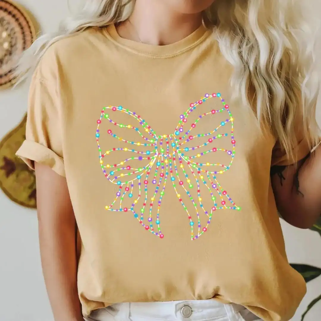 Review Retro Christmas Light Bow Shirt for Women