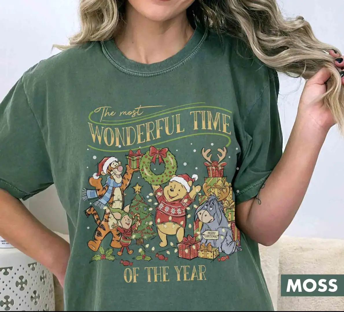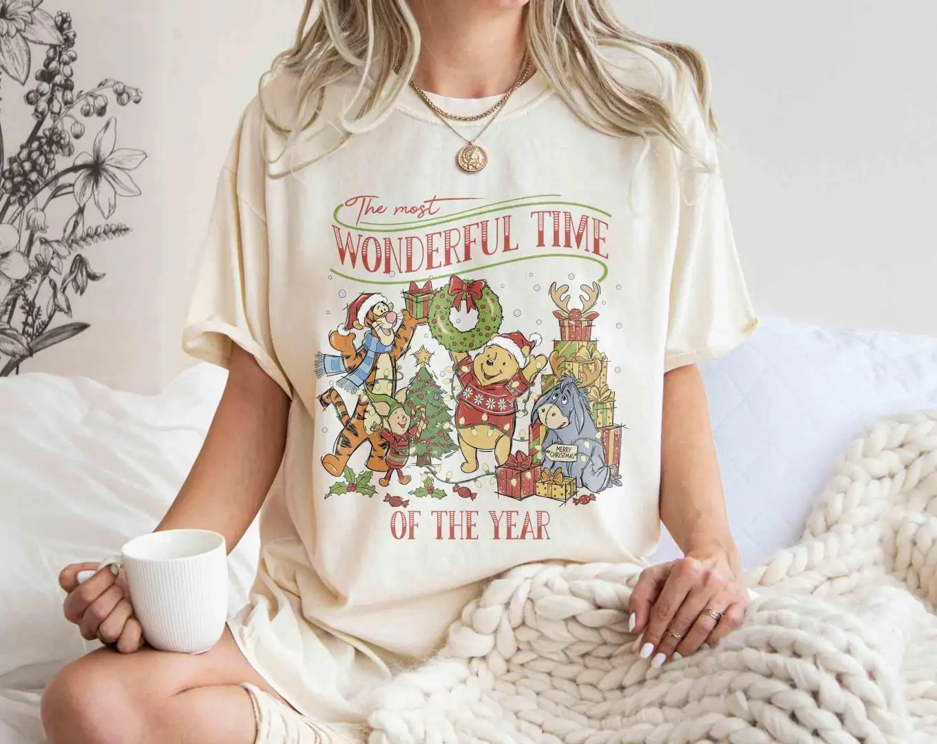 Retro Comfort Colors The Most Wonderful Time Of The Year Winnie Pooh and Friends Shirt, Christmas Gift, Winne The Pooh Christmas Shirt