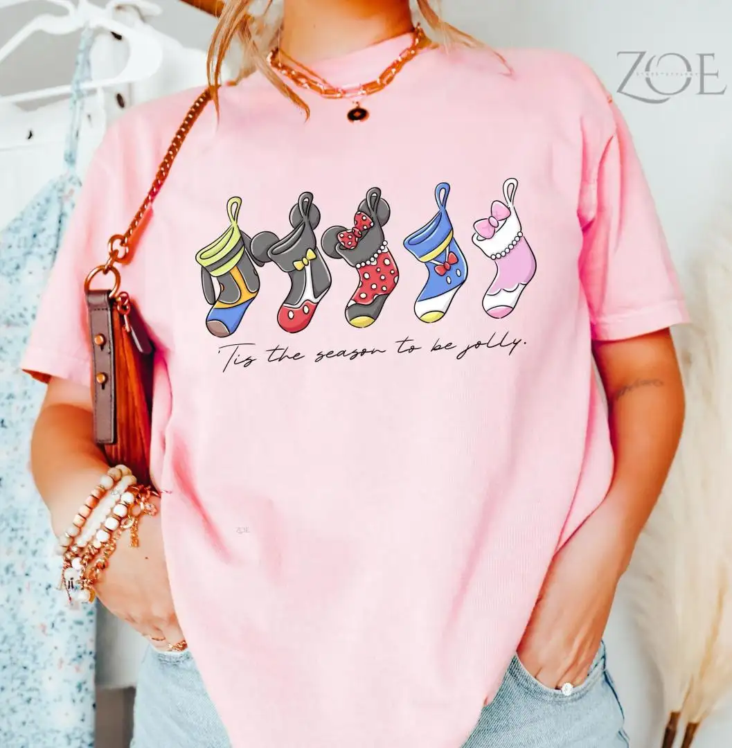 Retro Disney Mickey and Friends Christmas Stocking Shirt, Disney Christmas Vibes Shirt, Tis the Season to be Jolly, Disney Holiday Shirts