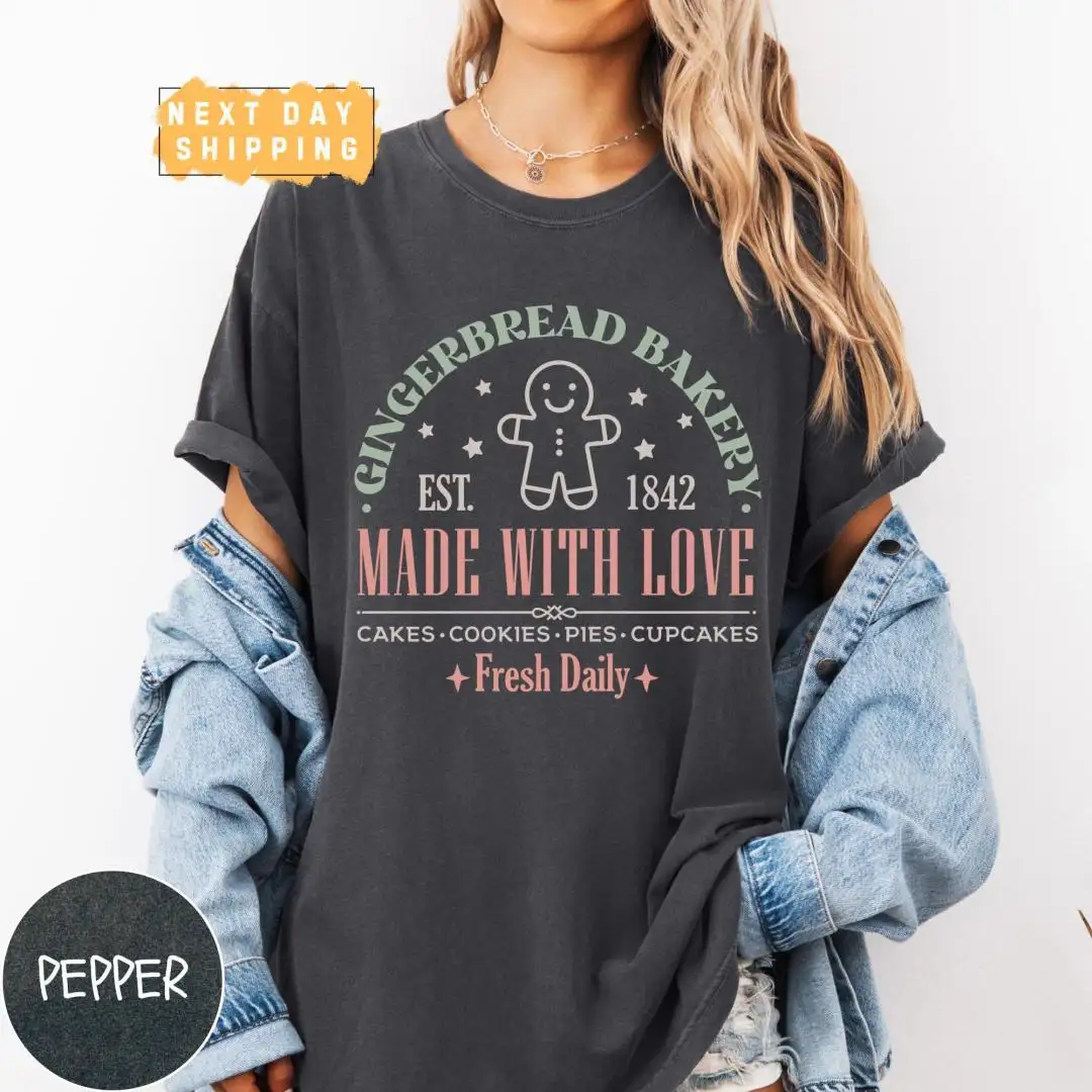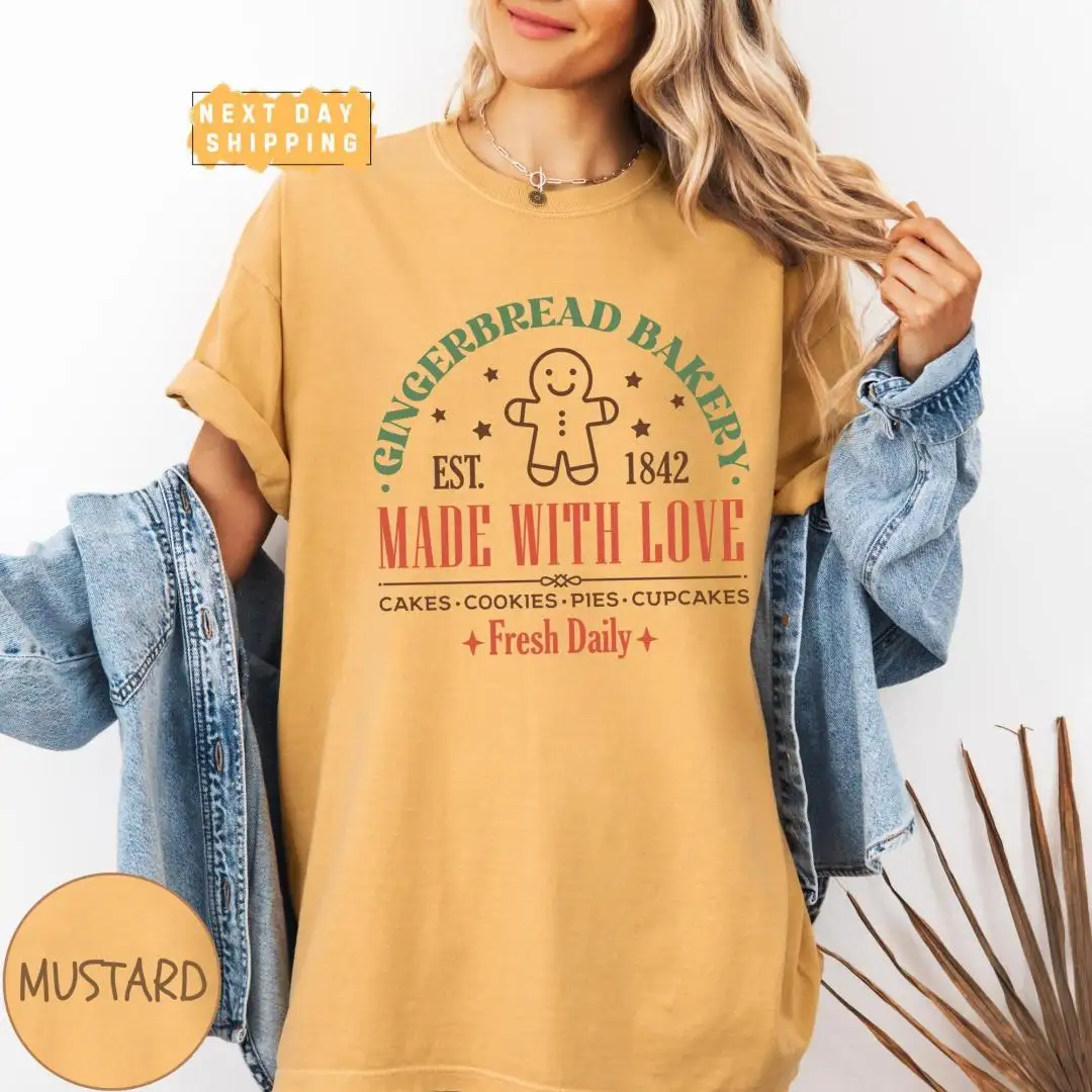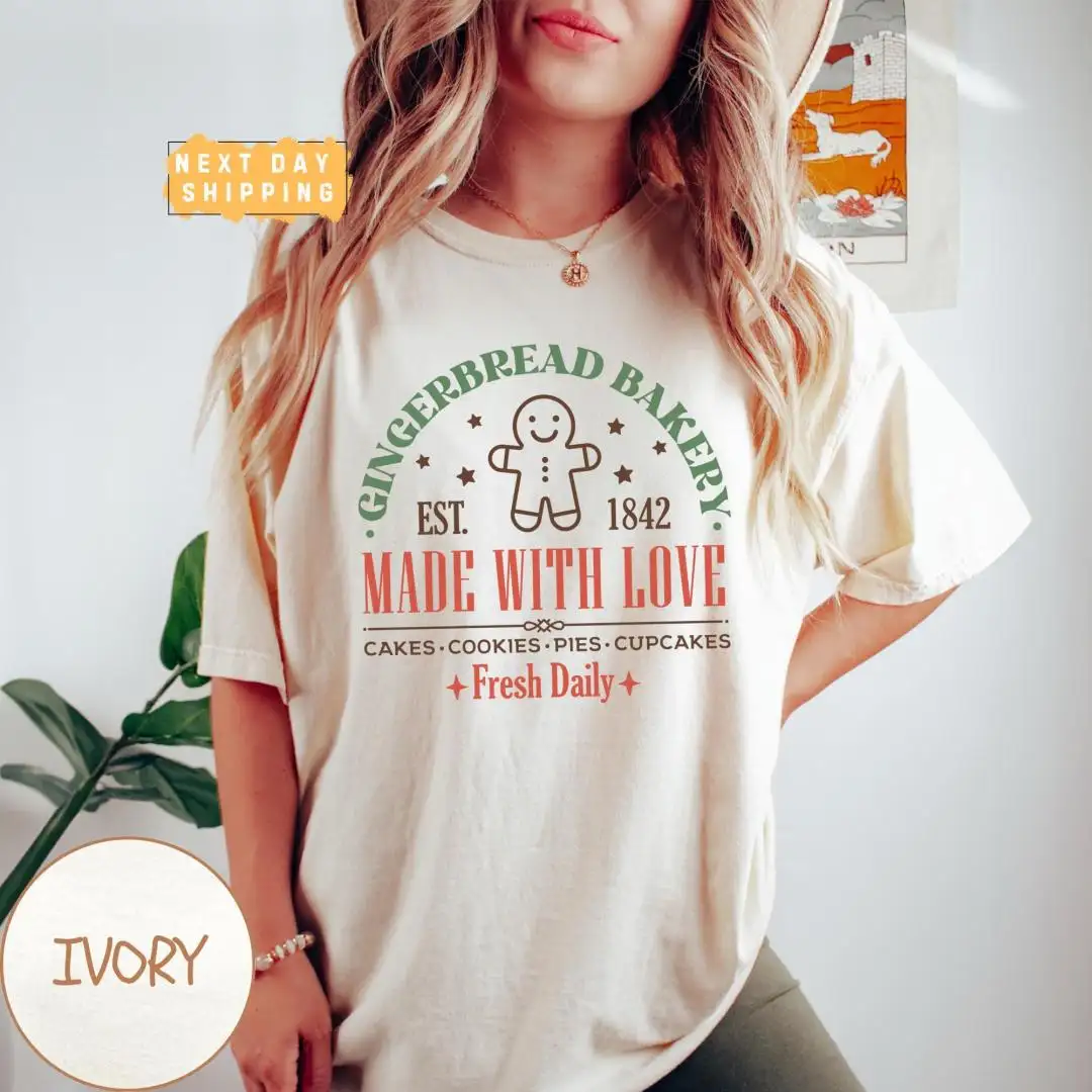 Retro Gingerbread Bakery Christmas Shirt for Women
