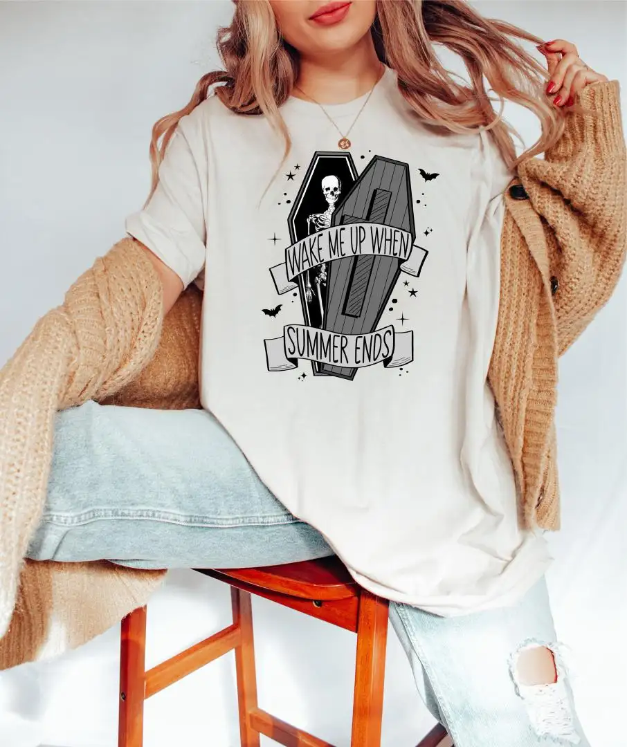 Retro Halloween Skeleton Shirt – Wake Me Up When Summer Ends