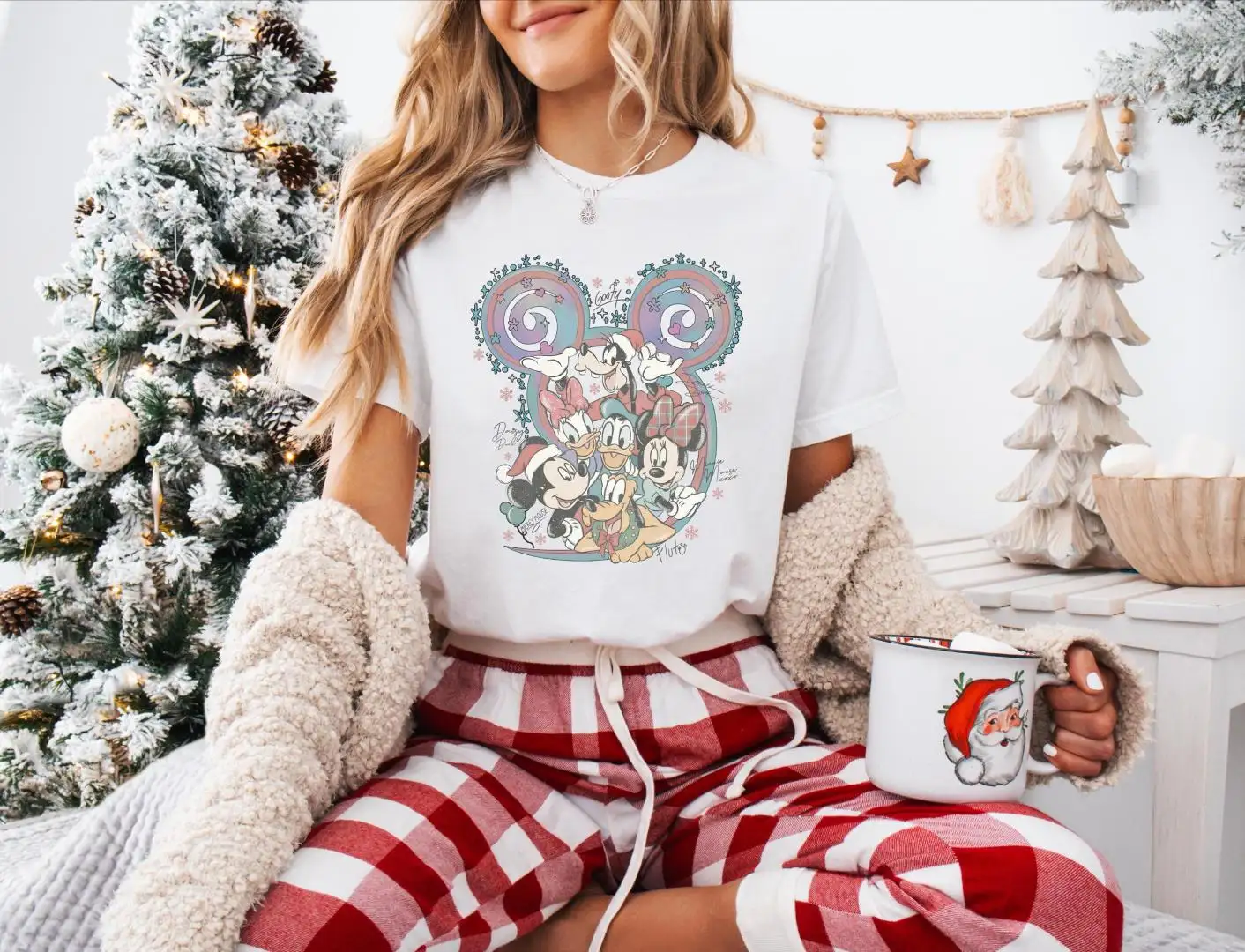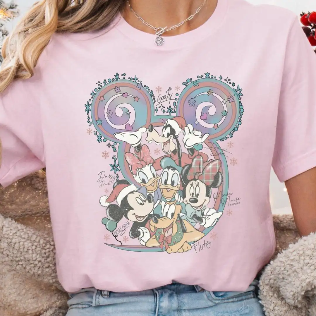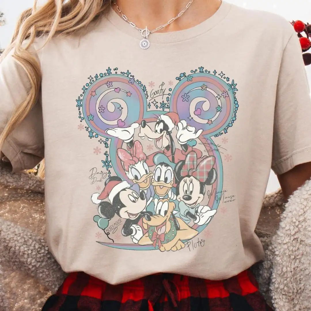 Retro Mickey and Friends Christmas Signature Shirt, Mickey Ear Vintage Xmas Tee, Disney Winter Holiday Sweater, Disney Christmas Sweatshirt