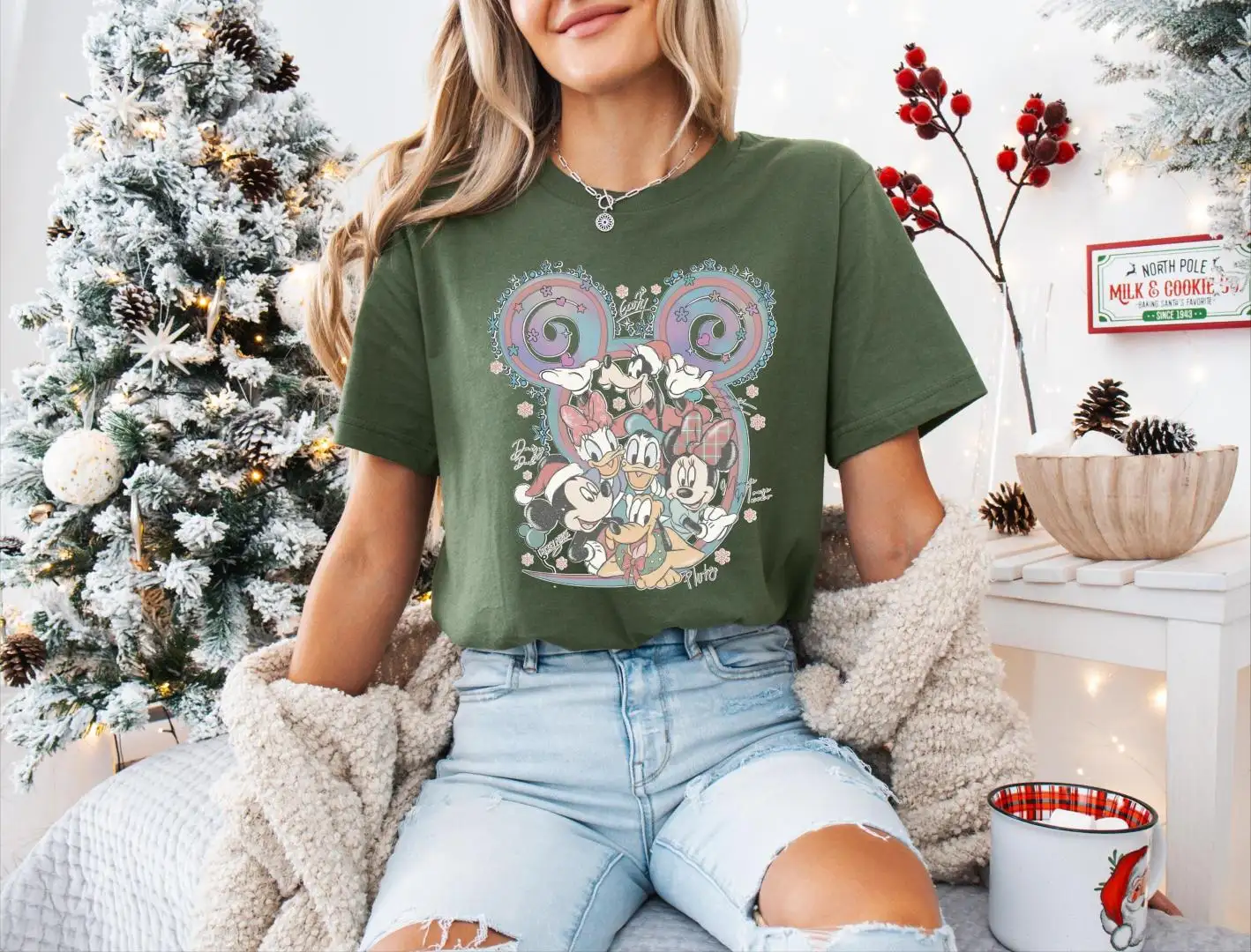 Review Retro Mickey and Friends Christmas Signature Shirt, Mickey Ear Vintage Xmas Tee, Disney Winter Holiday Sweater, Disney Christmas Sweatshirt
