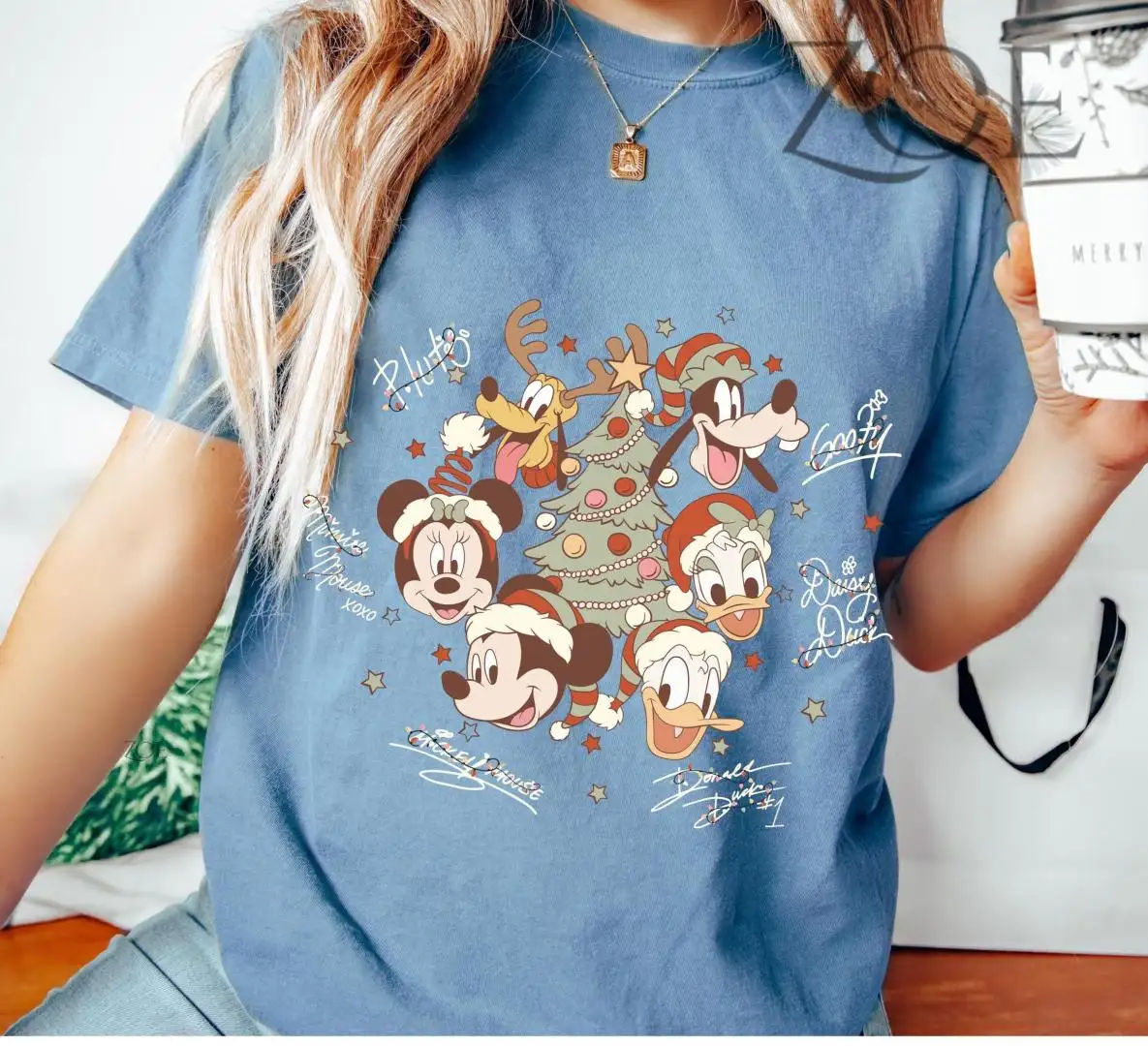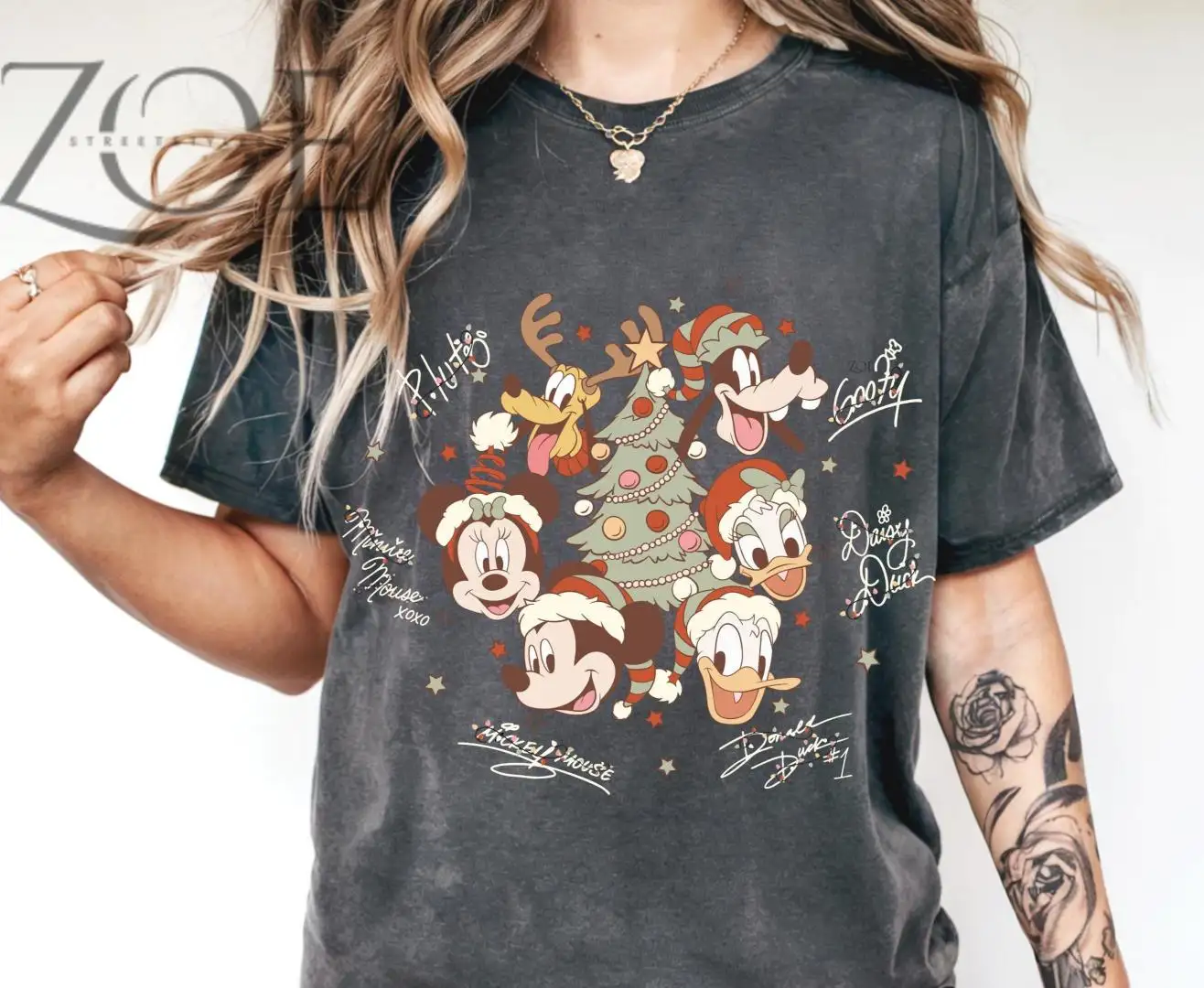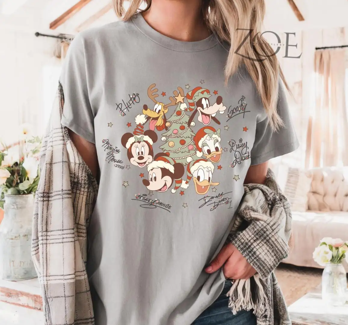 Retro Mickey and Friends with Signatures Christmas Shirt, Christmas Mickey & Co Shirt, Disney Christmas Tee, Disney Characters Tee