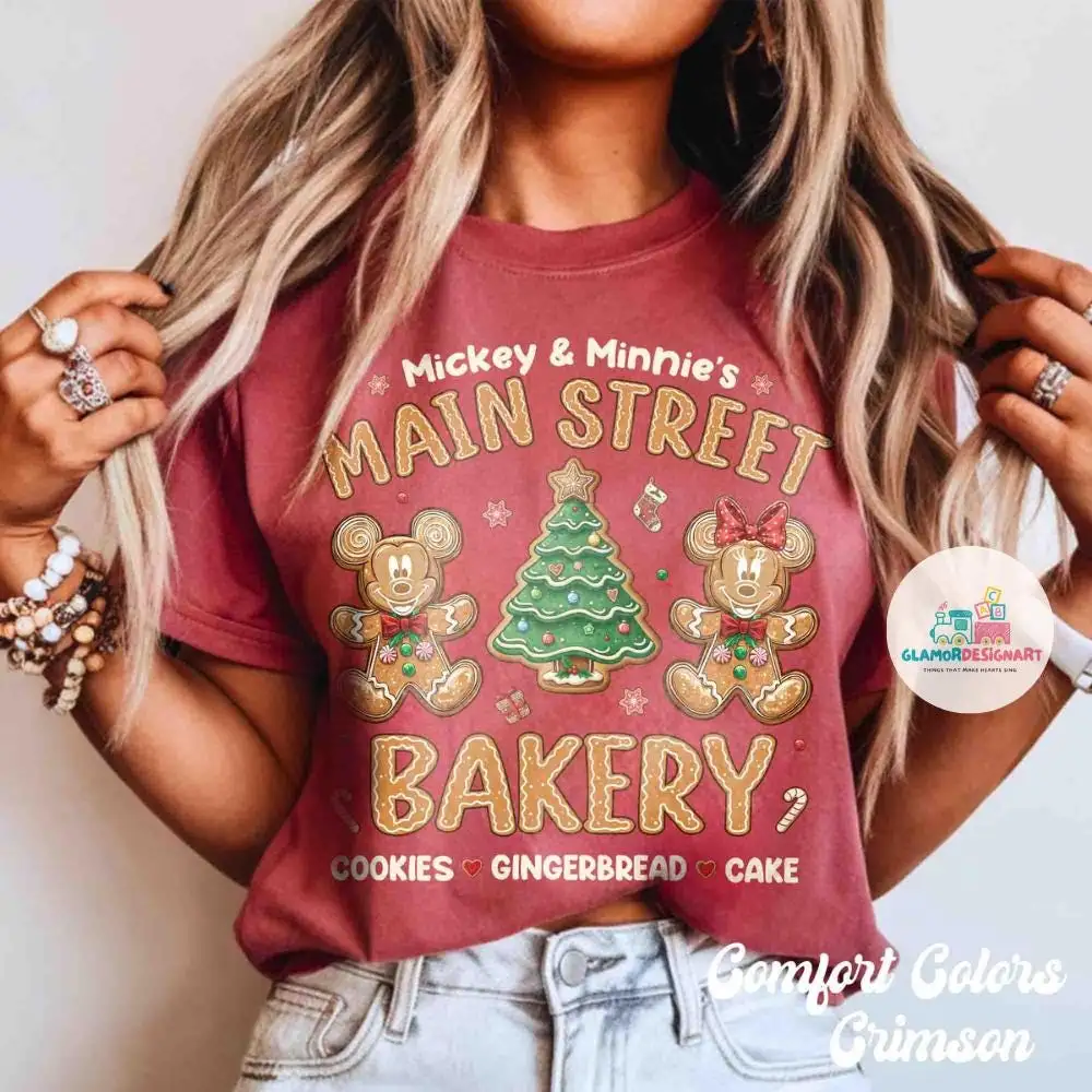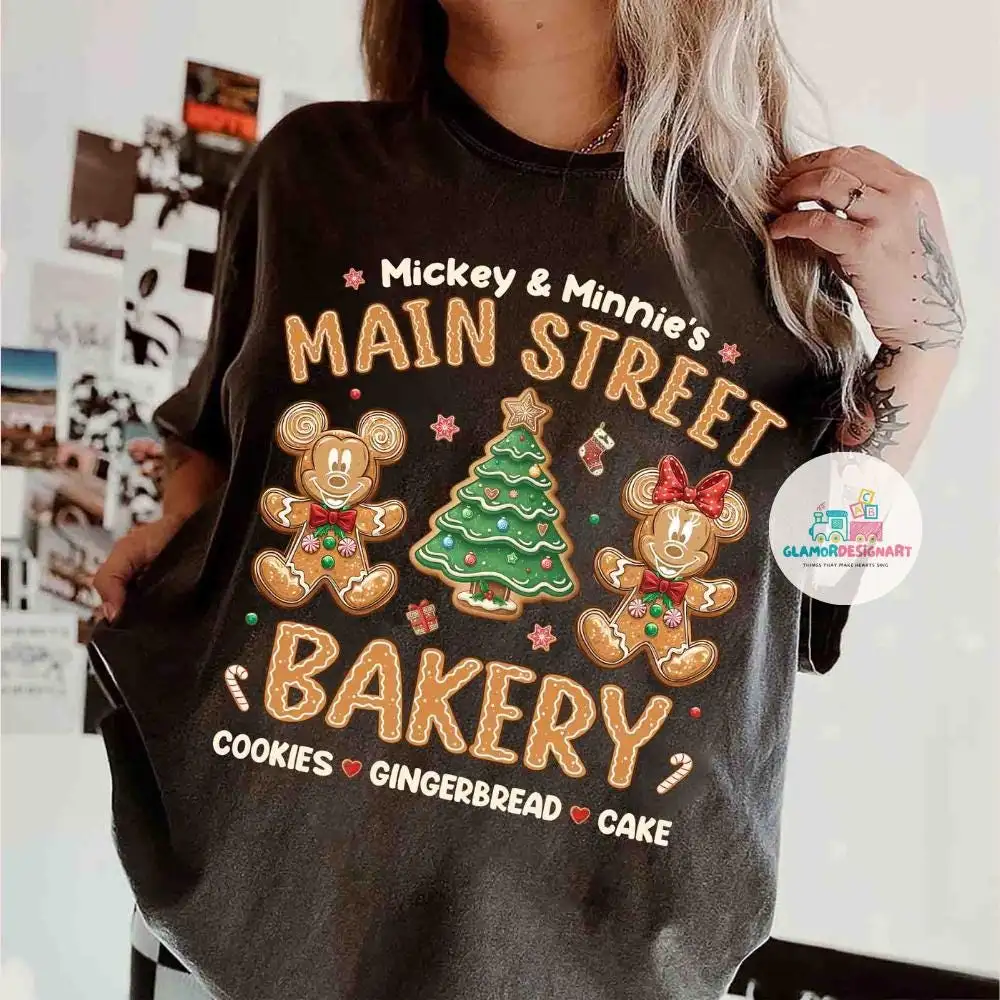 Review Retro Mickey Minnie Gingerbread Christmas Shirt, Mickey Minnie Main Street Bakery Shirt, Pink Disney Christmas Shirt, Christmas Party Shirt