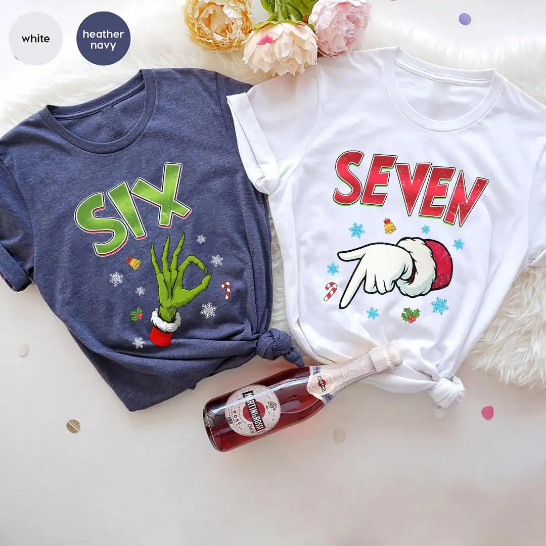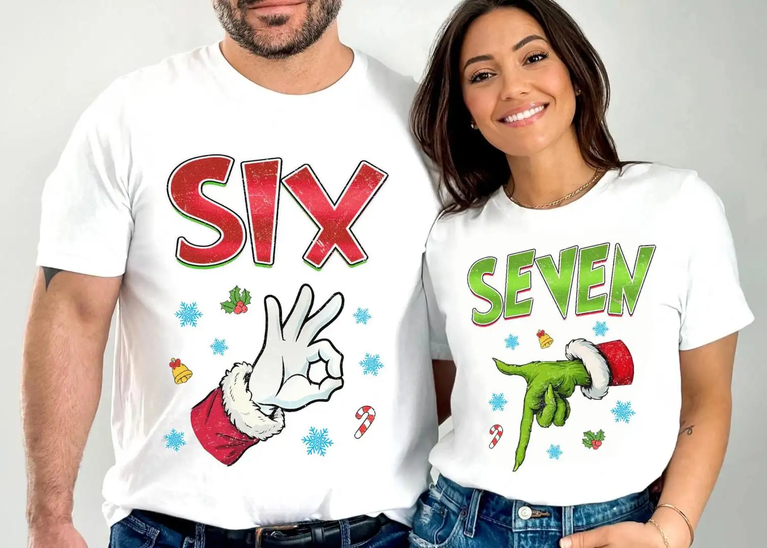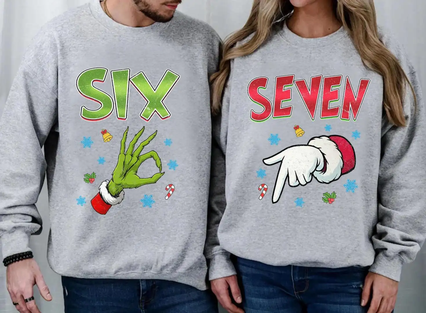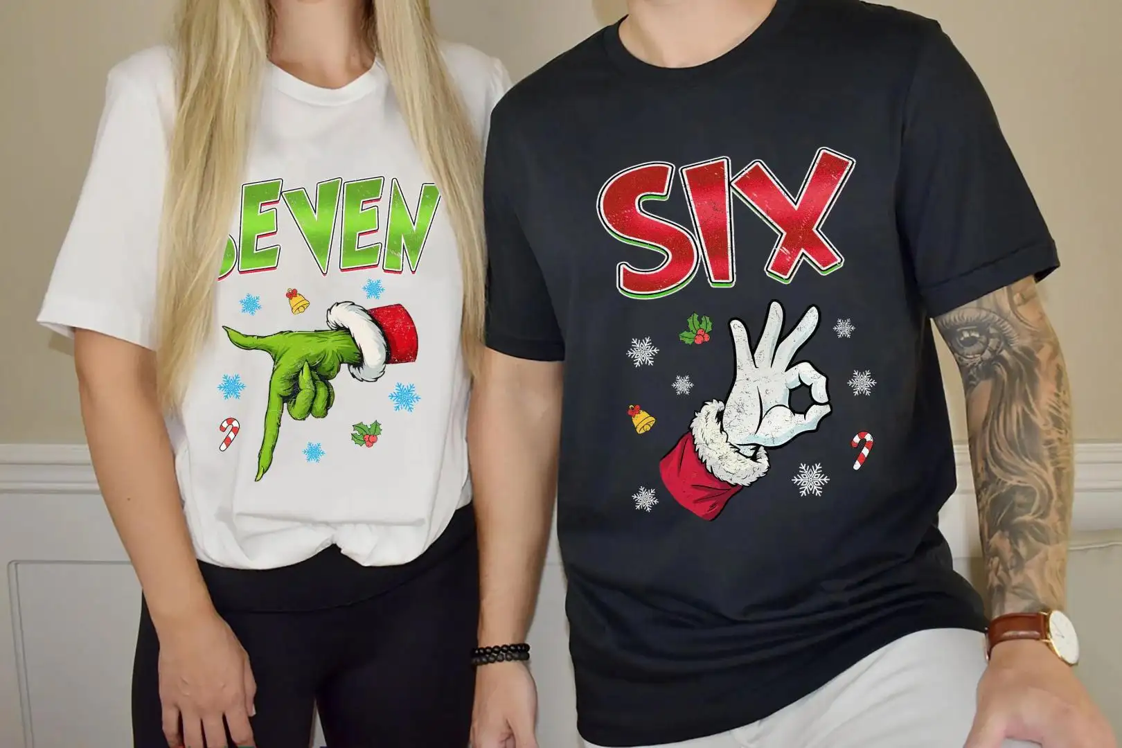 Retro Santa 67 Hand Sign Christmas Shirt for Couples