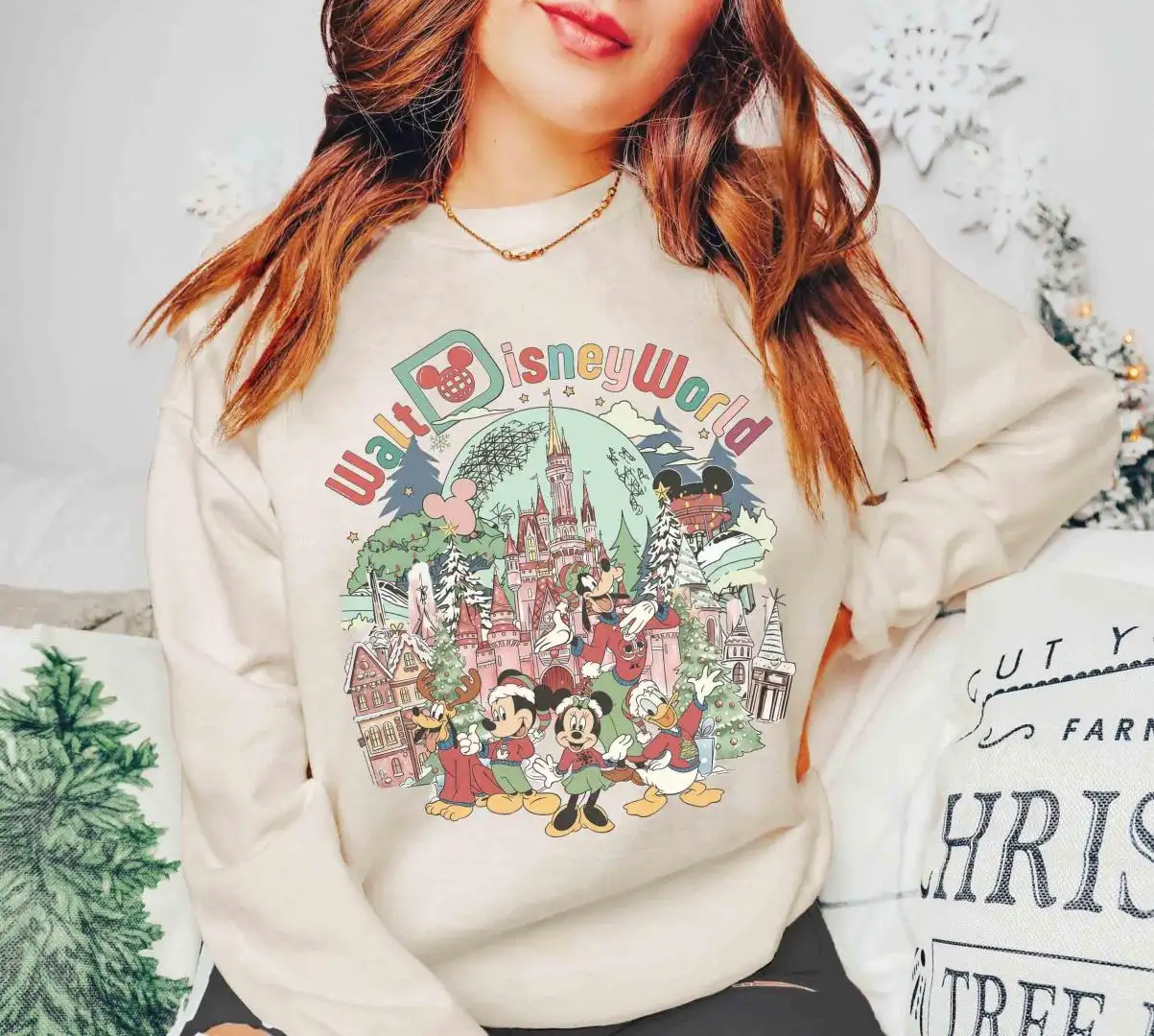 Review Retro Walt Disney World Christmas Shirt, Disneyworld Christmas Shirt, Mickey And Friends Christmas Matching Tee, Very Merry Christmas Shirt