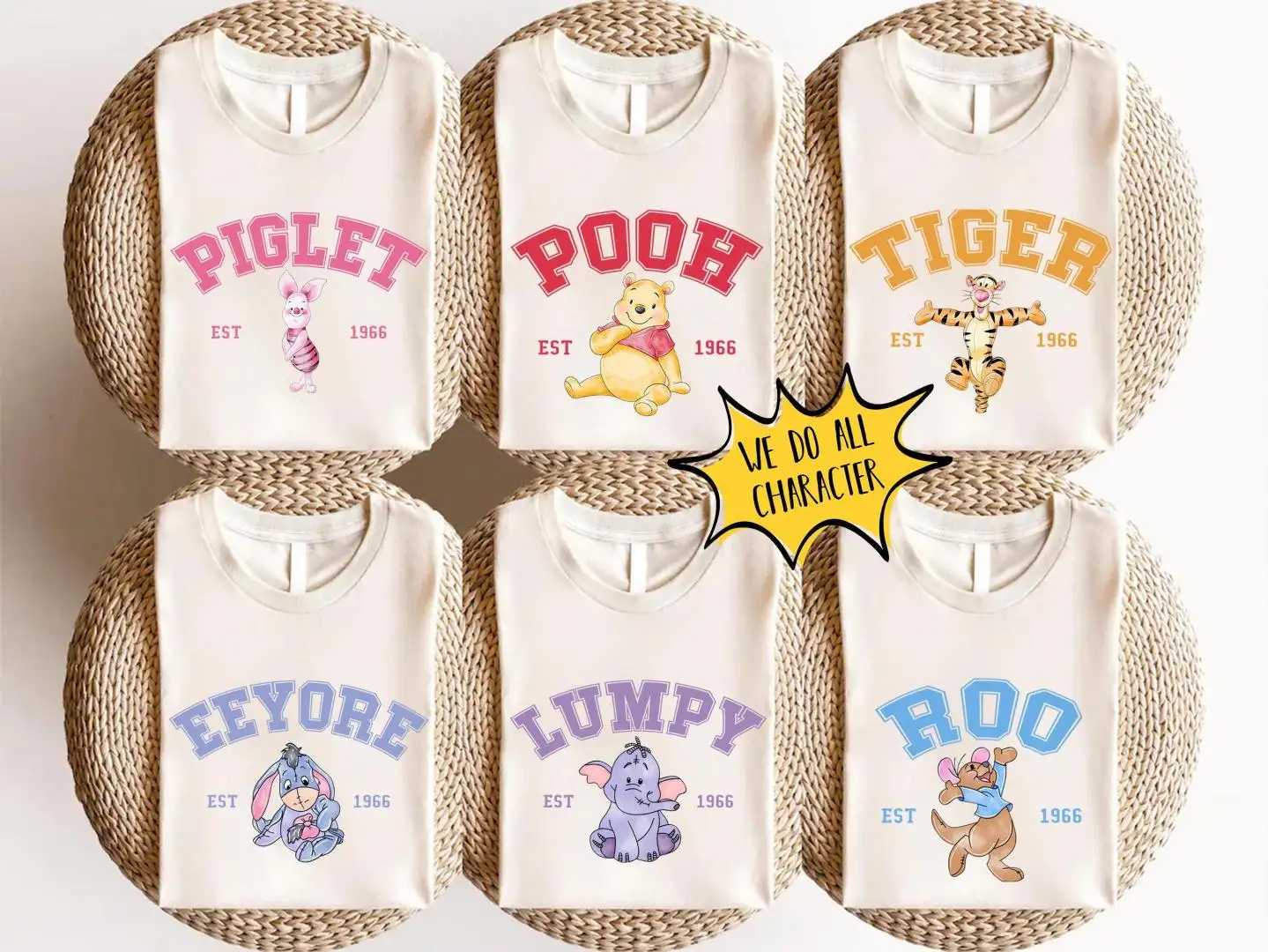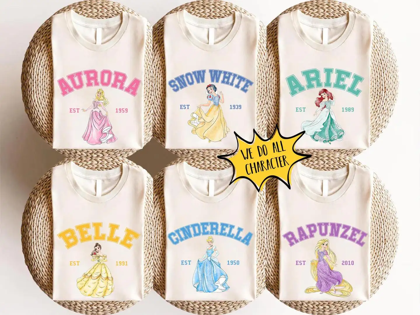 Retro Watercolor Disney Characters Shirt for Family Matching