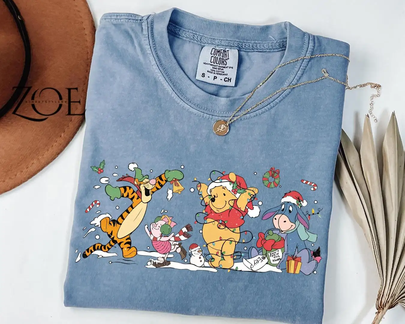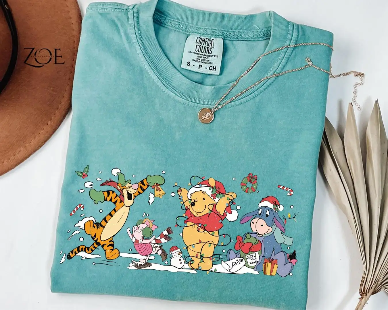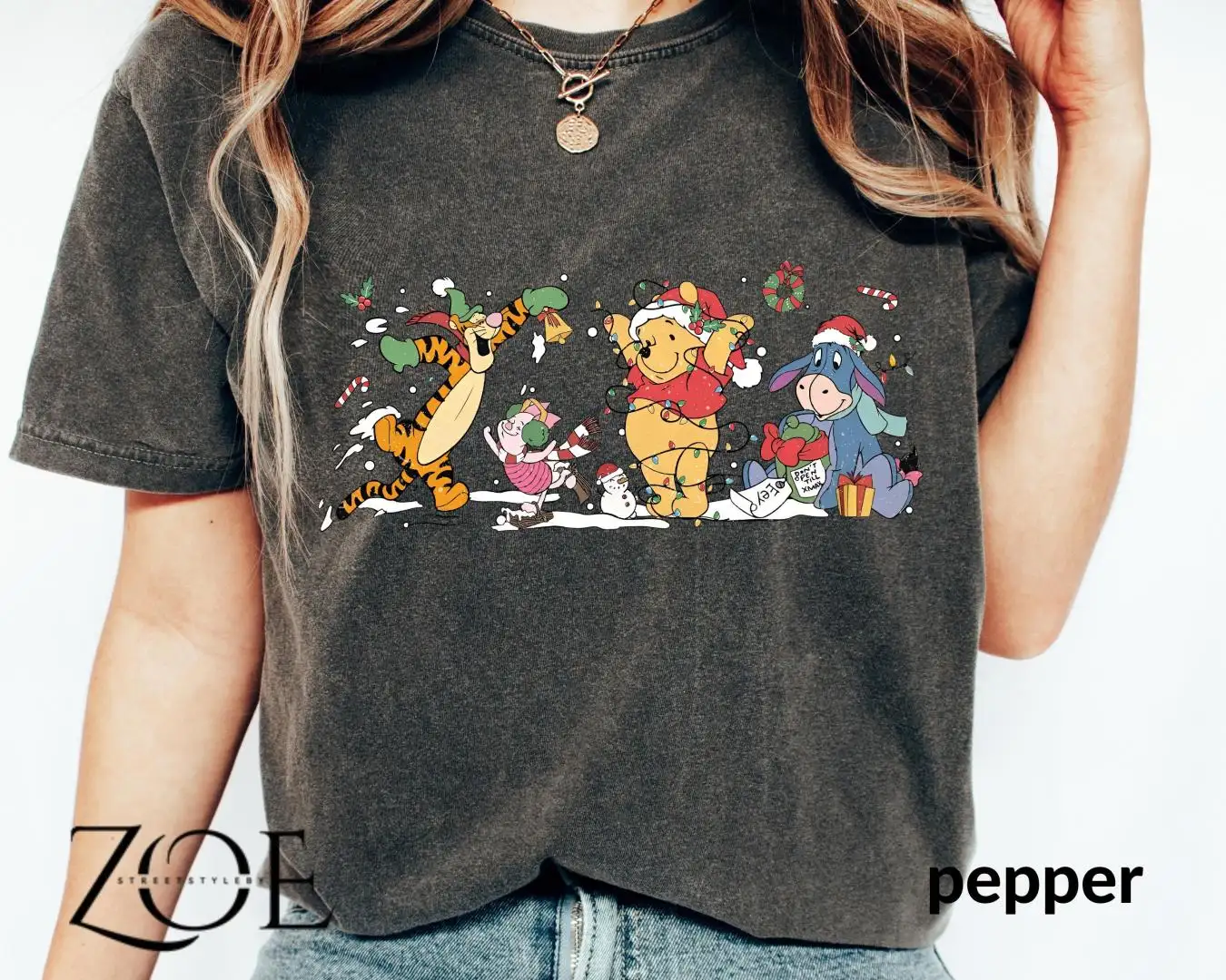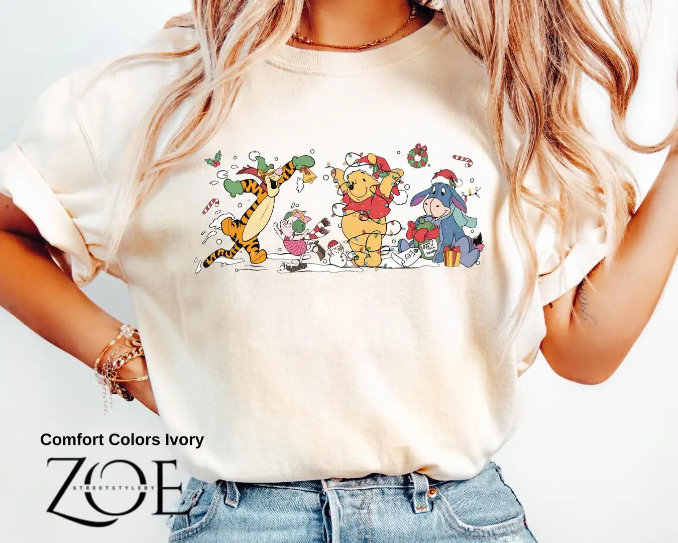 Review Retro Winnie Disney Christmas Shirt, Winnie Matching Christmas, Pooh and Friends Christmas Shirt, Disney Holiday Tee