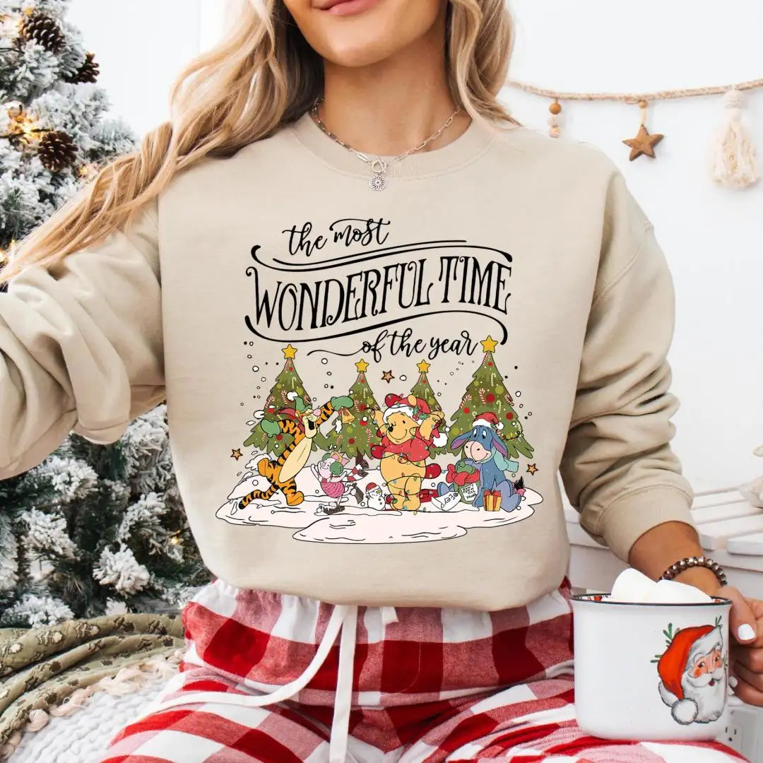 Retro Winnie the Pooh Christmas shirt, Christmas Family Sweatshirt, Winter Crewneck Shirt, Pooh and Friends Christmas shirt, Holiday Sweater
