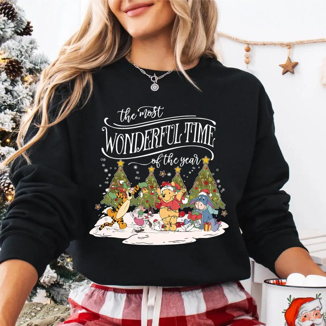 Review Retro Winnie the Pooh Christmas shirt, Christmas Family Sweatshirt, Winter Crewneck Shirt, Pooh and Friends Christmas shirt, Holiday Sweater