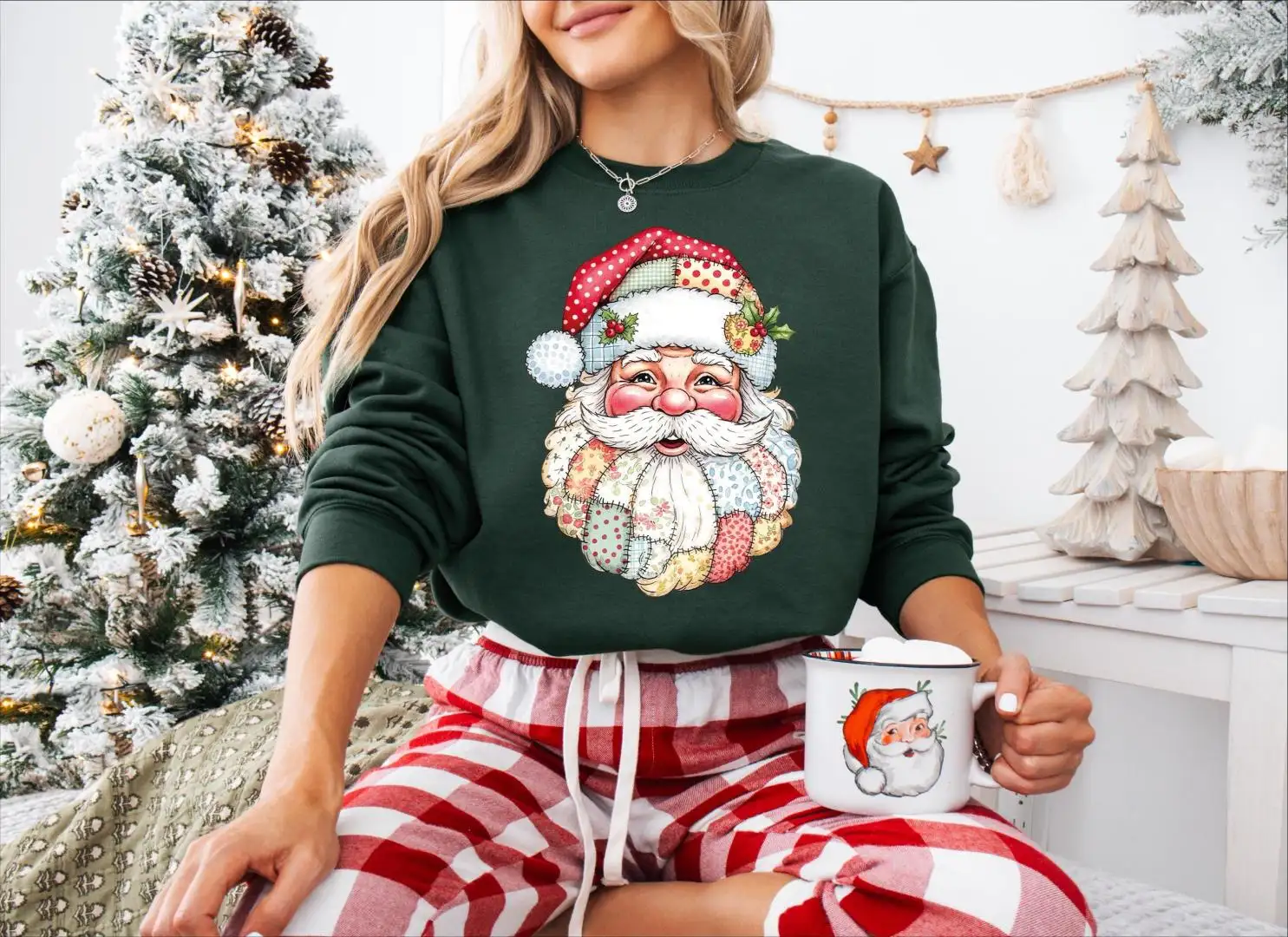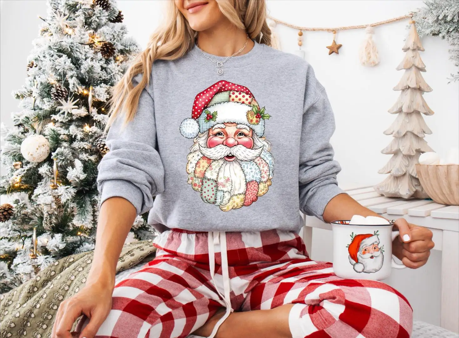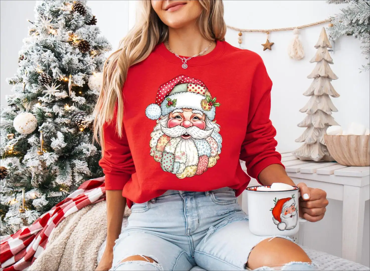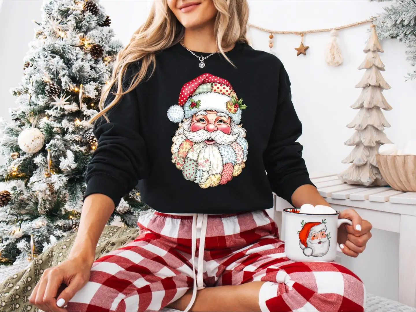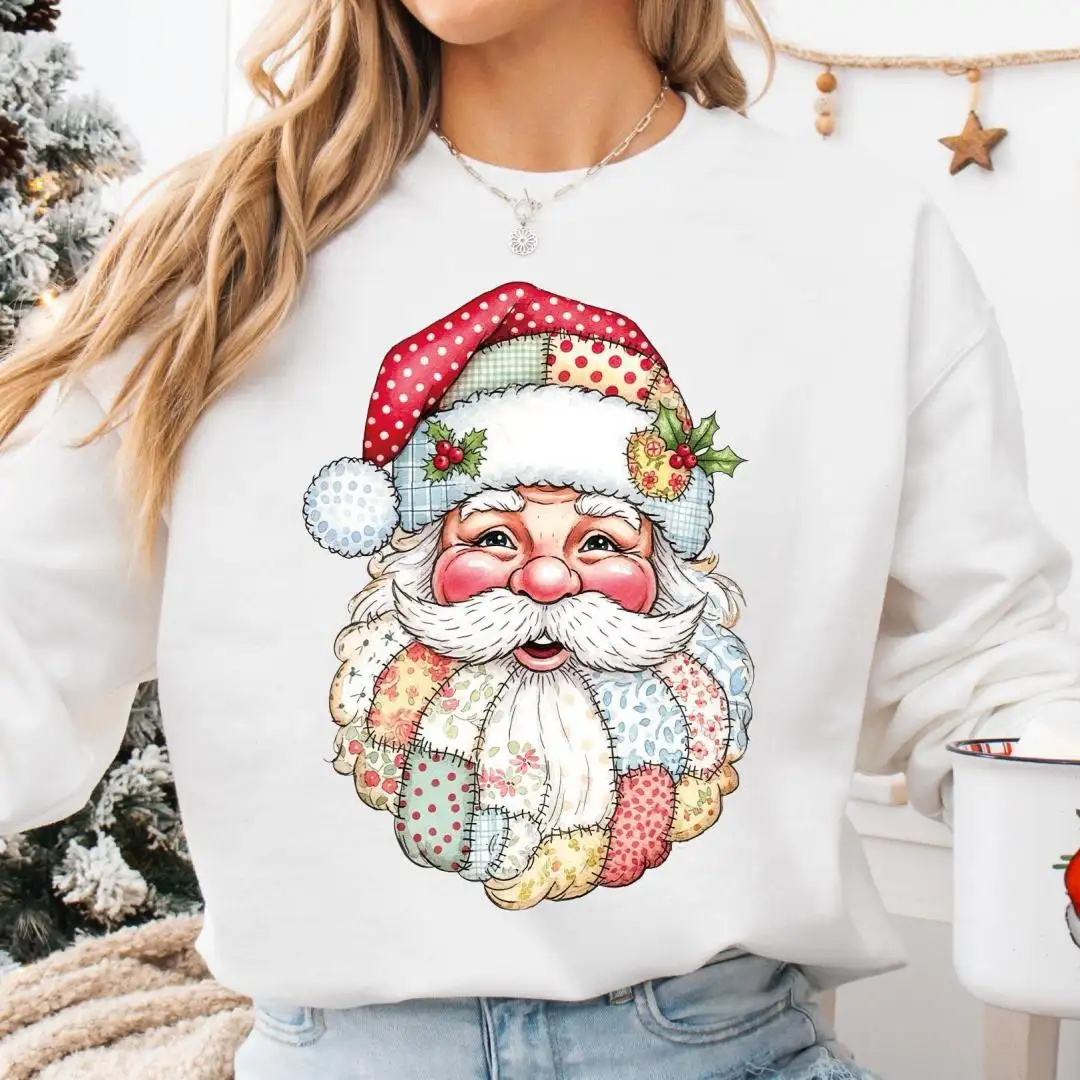 Santa Christmas Shirt, Christmas Patchy Santa Sweatshirt, Patch Work Santa Shirt, Winter Vibes, Christmas Vibes Sweater, Merry Christmas Tee